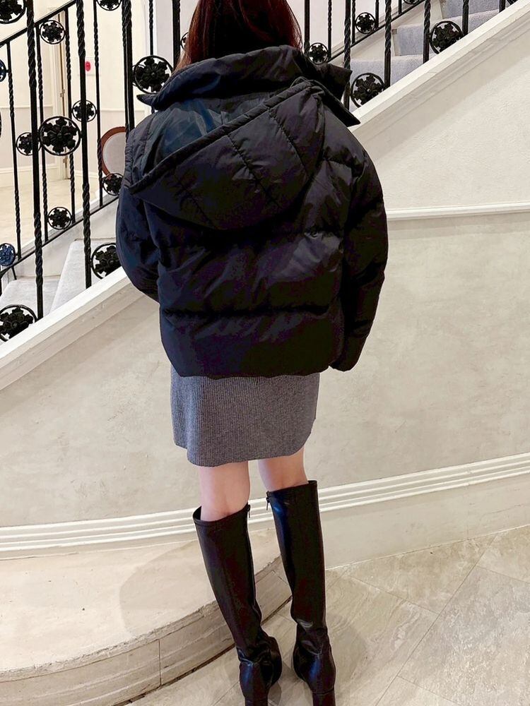 後ろから見えるフードのボリューム感が女性らしさを演出してくれます。