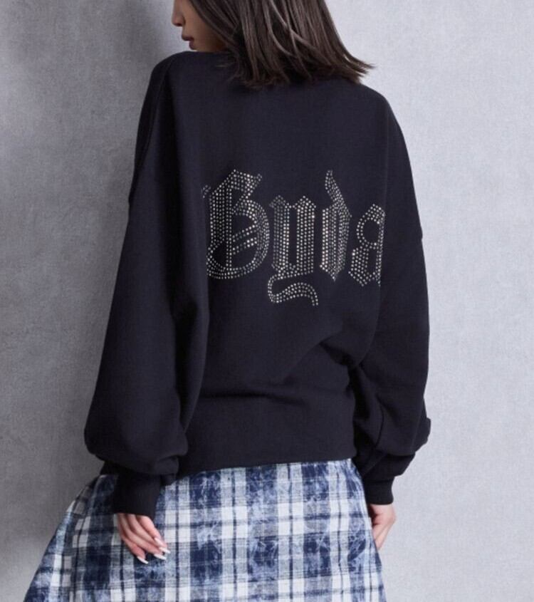 バックに人気のGYDAロゴがラインストーンではいっているプルオーバーです。