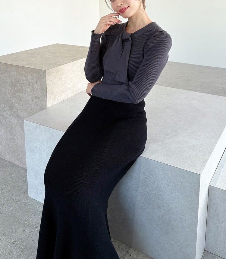【RESEXXY】ボウタイマーメイドニットワンピース