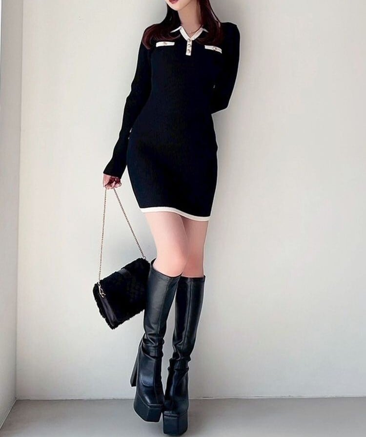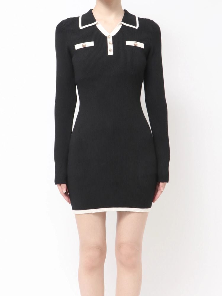 【RESEXXY】バイカラーニットポロワンピース