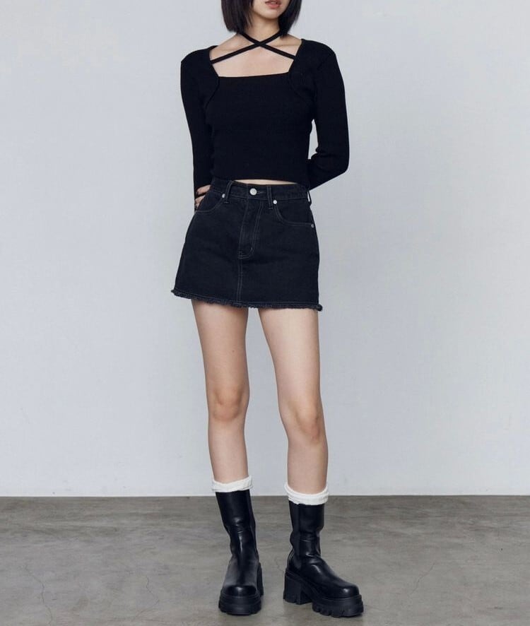 チョーカーギャザーショートスリーブニットやスキンラインニットのようなベーシックなアイテムとの合わせがおすすめです。
