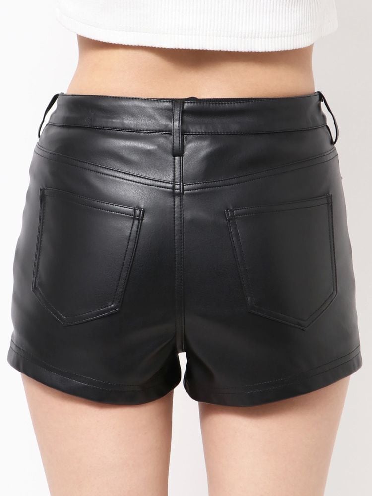 【GYDA】ハイウエストフェイクレザーショートパンツ