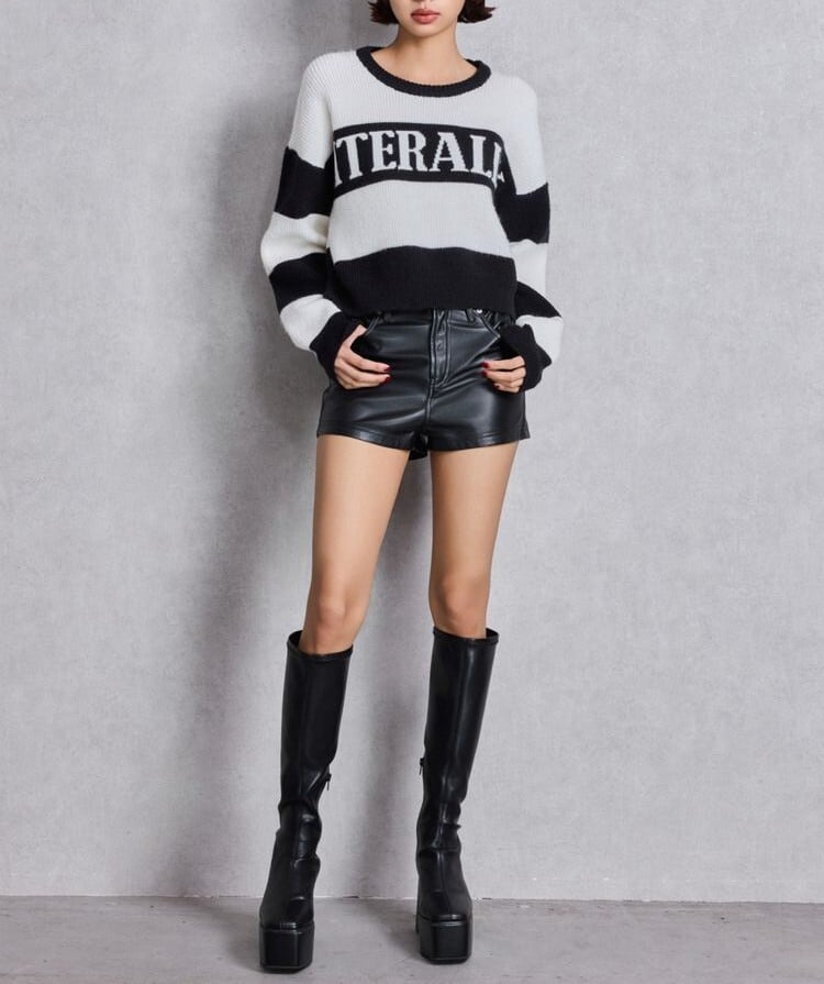ハイウエスト×ミニなので、ショートトップス×ブーツ合わせがGYDA(ジェイダ)らしいスタイリングです。