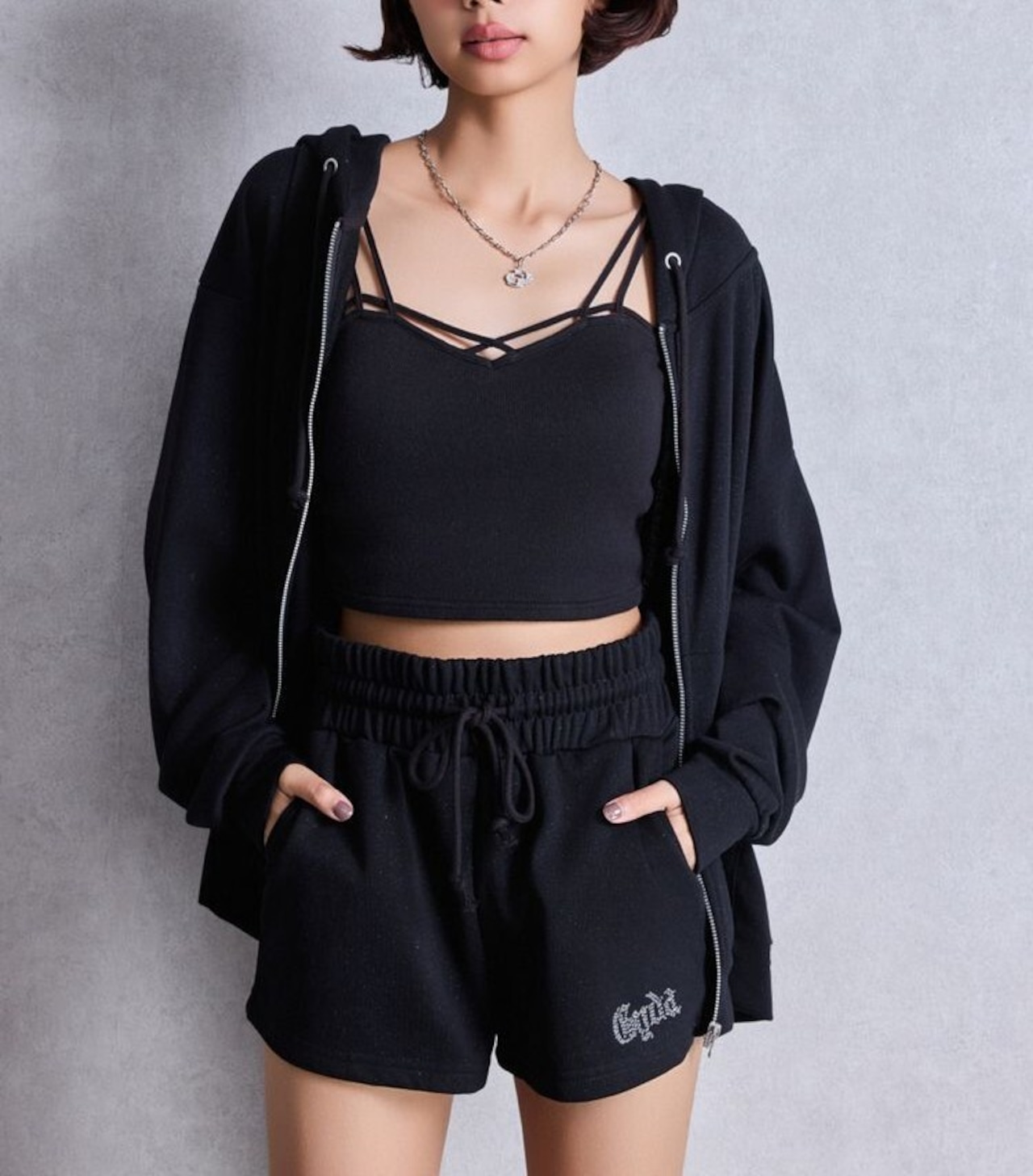 【GYDA】NEW BACK GYDAラインストーンラメパーカー 【SETUP着用可】