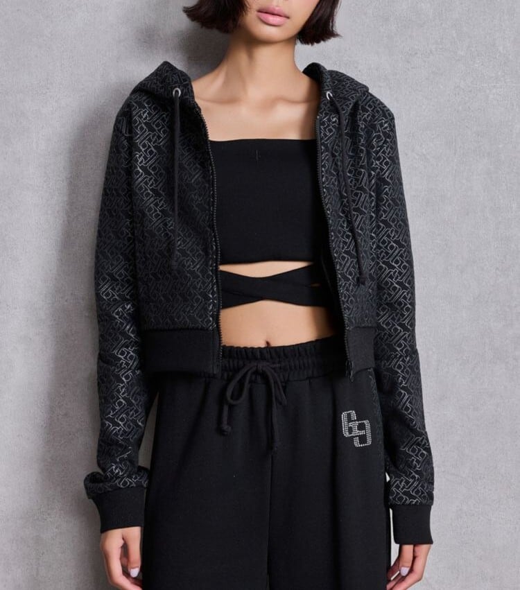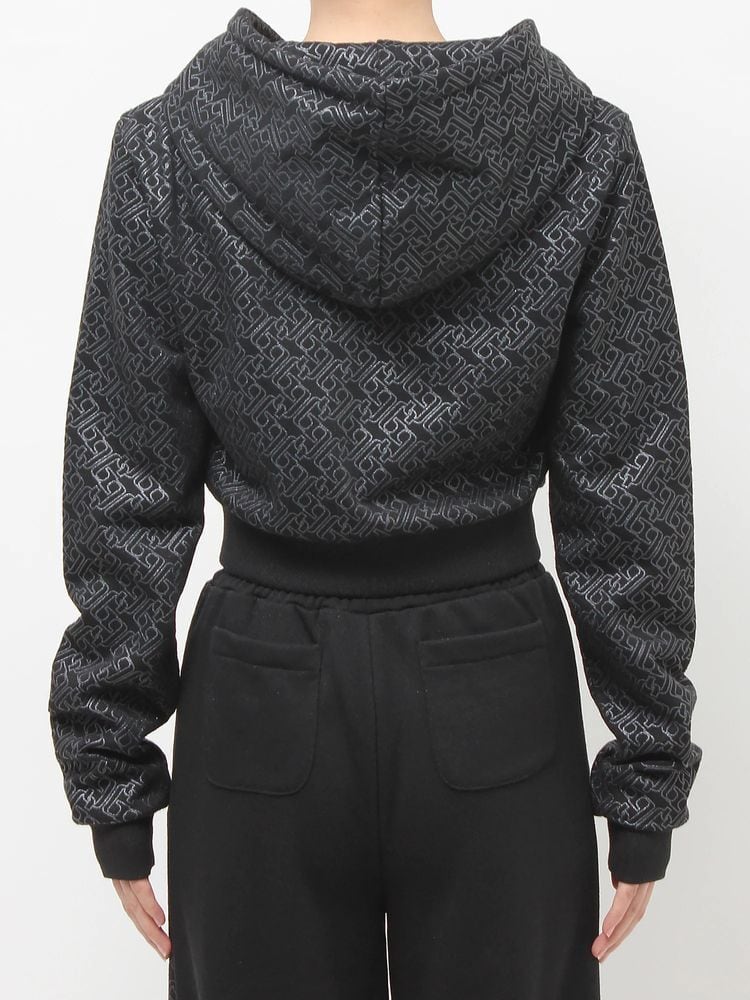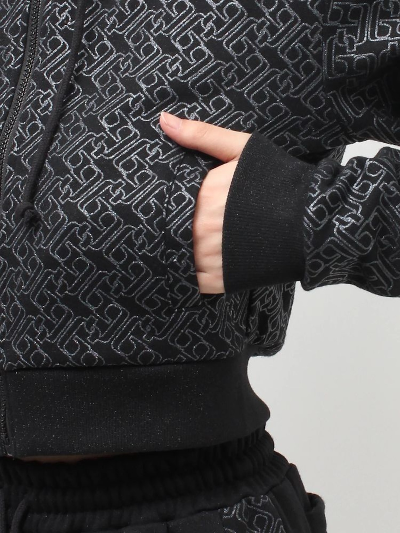 大人気のラメ裏毛生地にグリッタープリントされたショート丈のコンパクトなパーカーです。