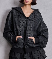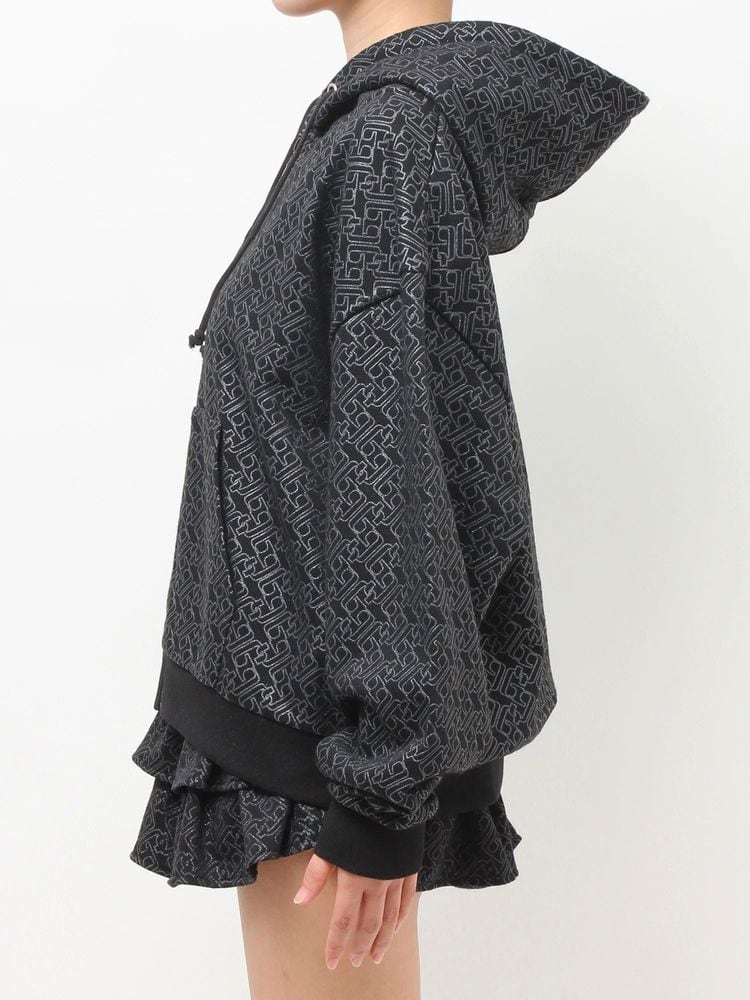 大人気のラメ裏毛生地にグリッタープリントされた大きめサイズのパーカーです。