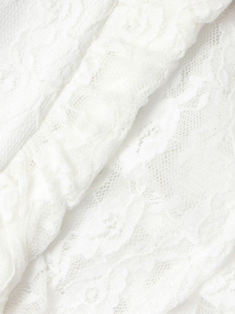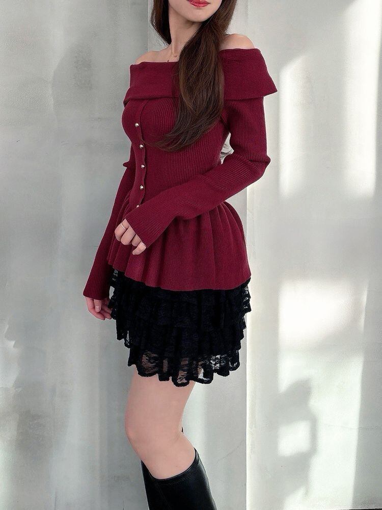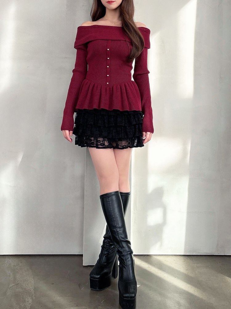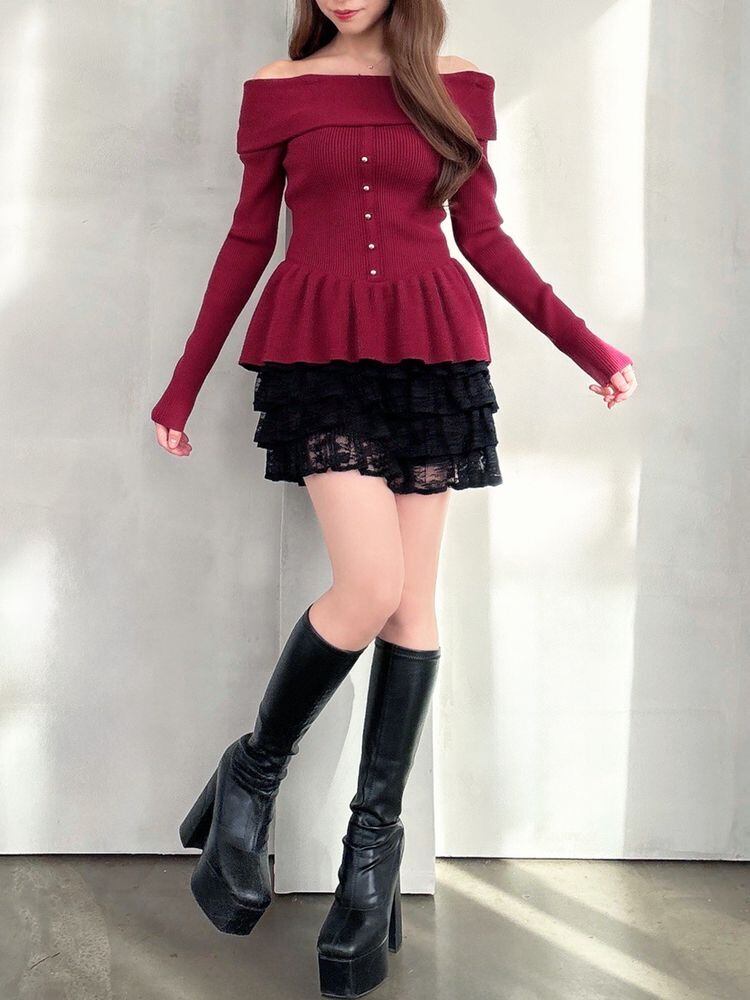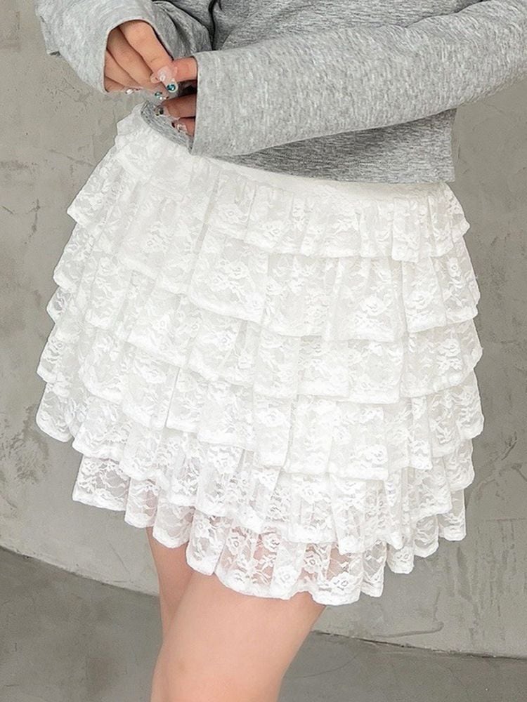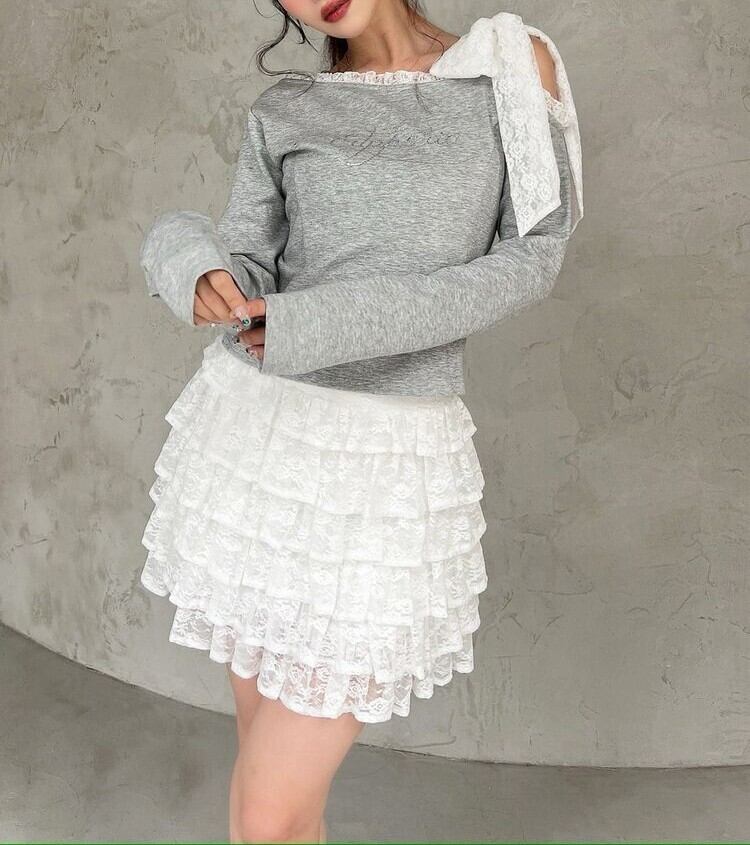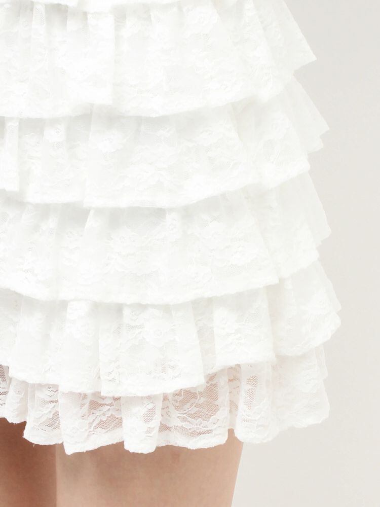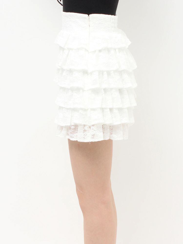 レース生地のフリルを重ね、程よいボリューム感のミニスカートに。