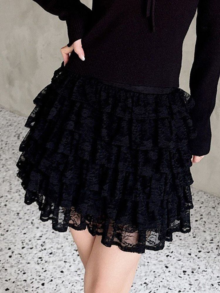 レース生地×フリルデザインでトレンド感のあるミニスカート