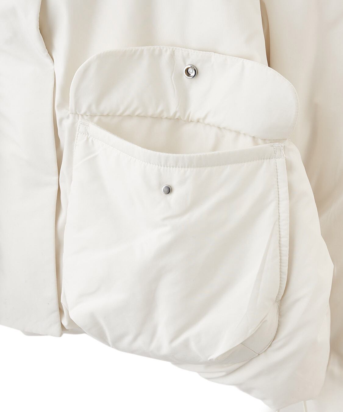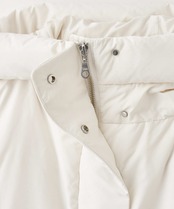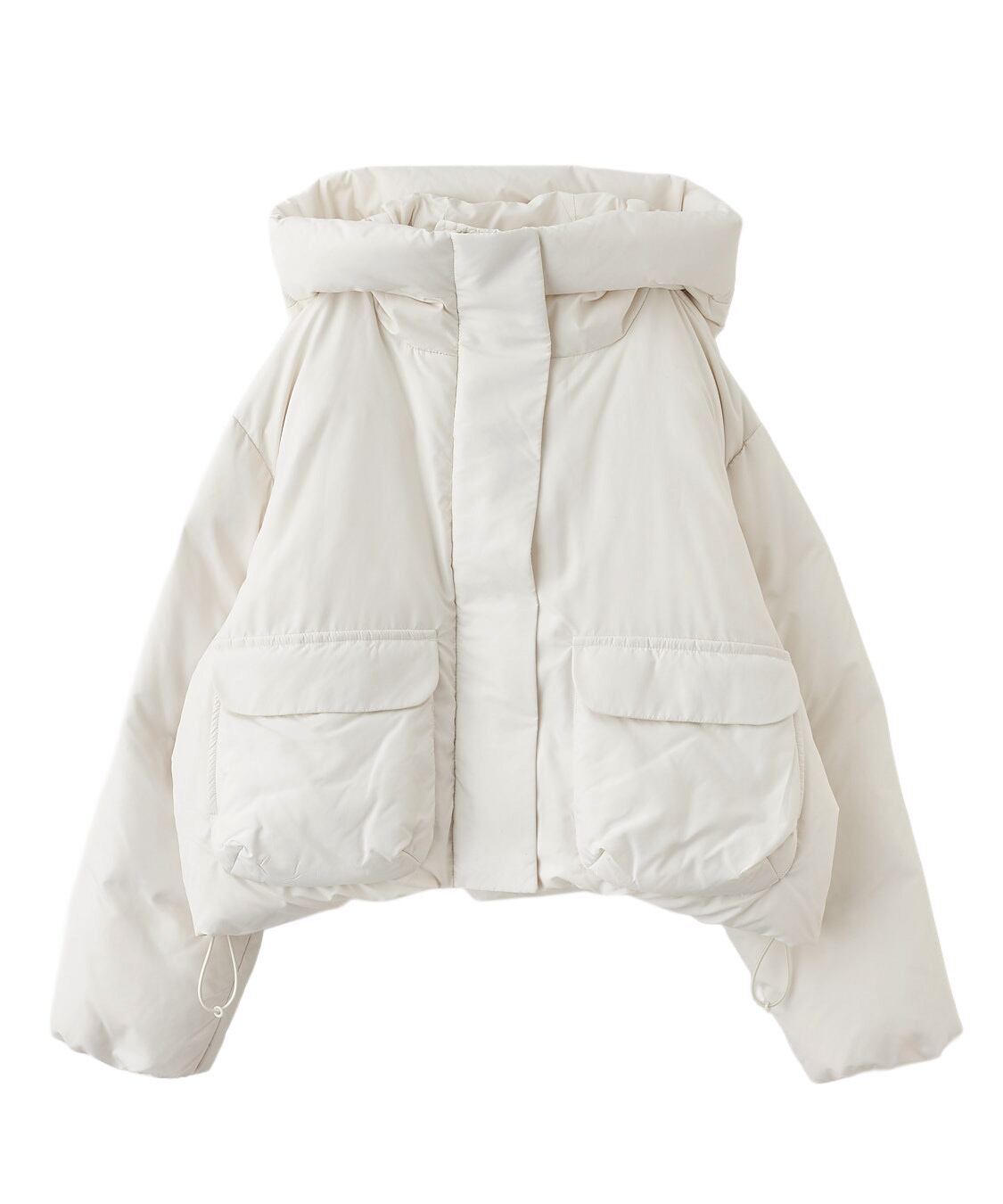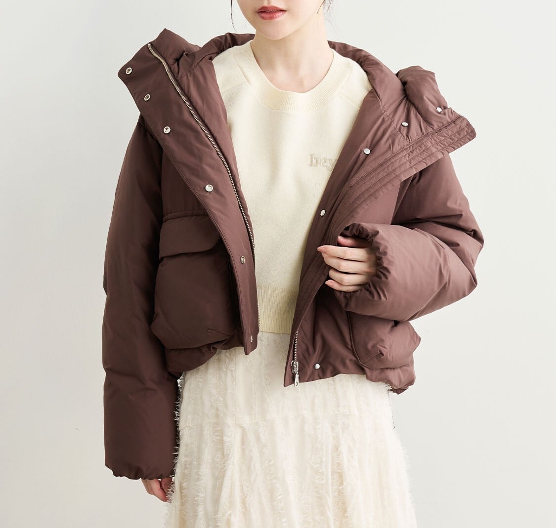 コロンとしたコンパクトな丈感のフードダウンコート。マットな光沢がある素材を使用し、ダウン90%フェザー10%でとても軽く保温性があり暖かさも抜群です。ダウンの分量にこだわり、着ぶくれしないように仕上げました。フードが顔回りにくるようにパターンにこだわり小顔効果◎ポケットは丸い形状で柔らかい印象に仕上げながらも、サイドからも手が入れられる実用性も兼ね備えたデザインに。ダウンの中でもコンパクトな印象なので普段ダウンを着ない方にもおすすめしたい一着です。程よい丈感なので、スカートにもパンツにもワンピースにも合わせやすい優秀アウターです。