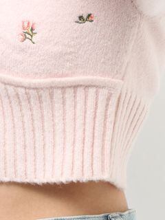 小花柄を身頃全体に刺繍したデザインニット。