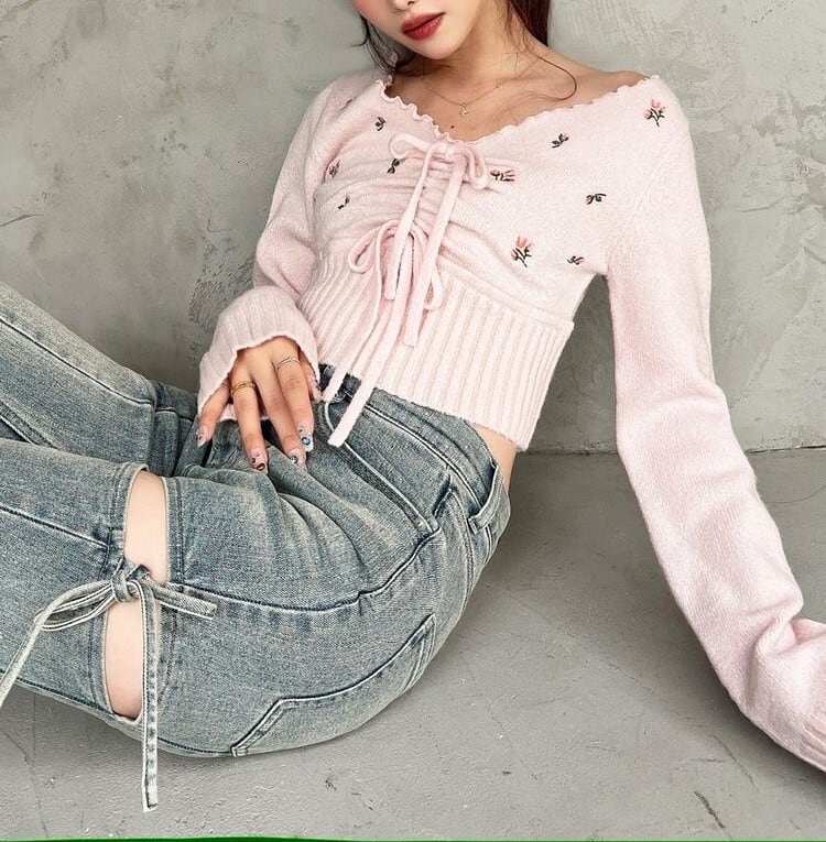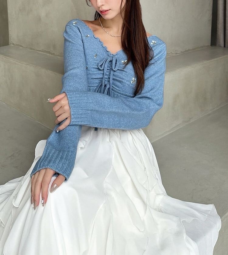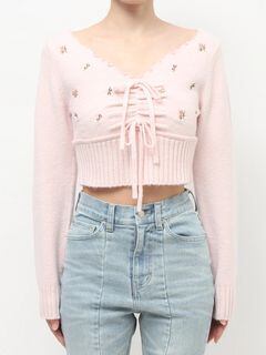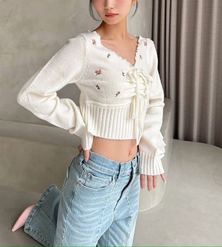 【RESEXXY】フラワーエンブロイダリーニットトップス