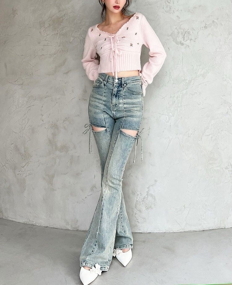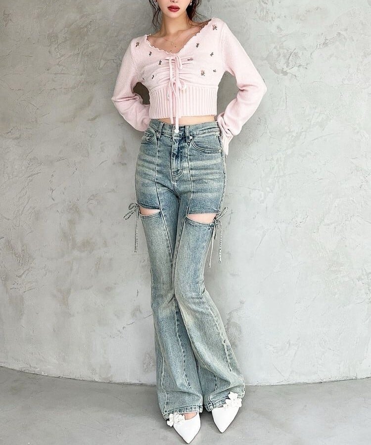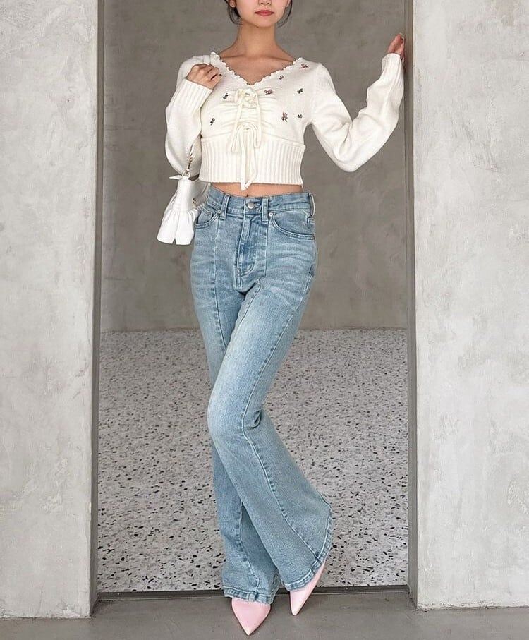 クロップド丈なのでハイウエストボトム合わせがおすすめ!