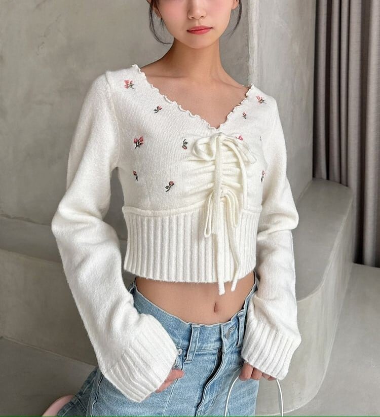 小花柄の刺繍がシーズンムードを高める春ニット