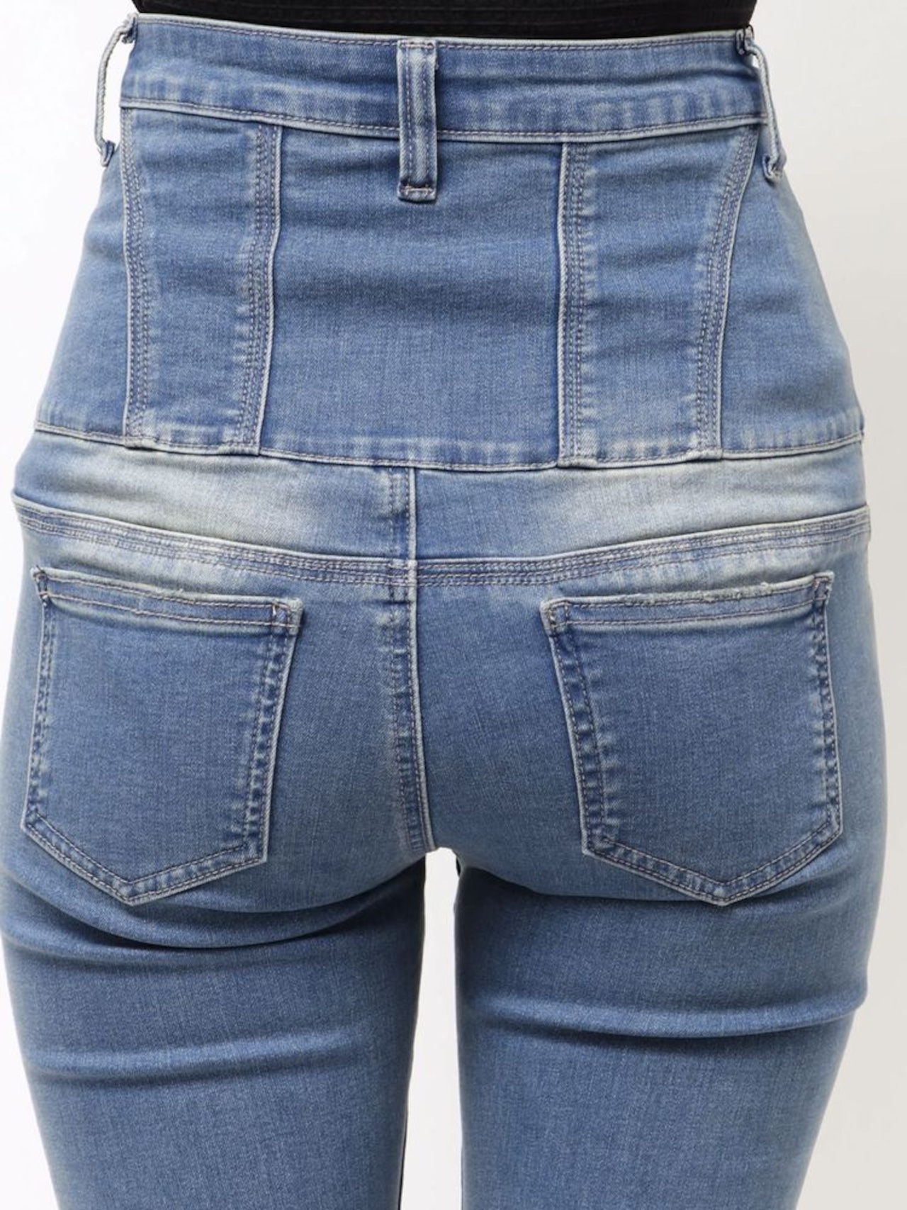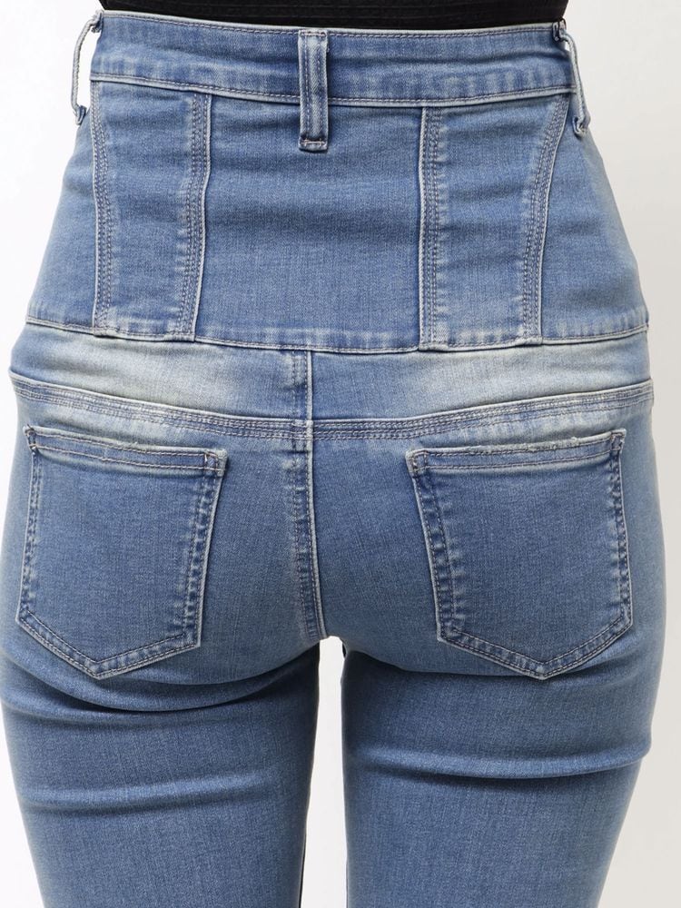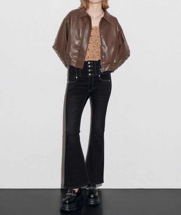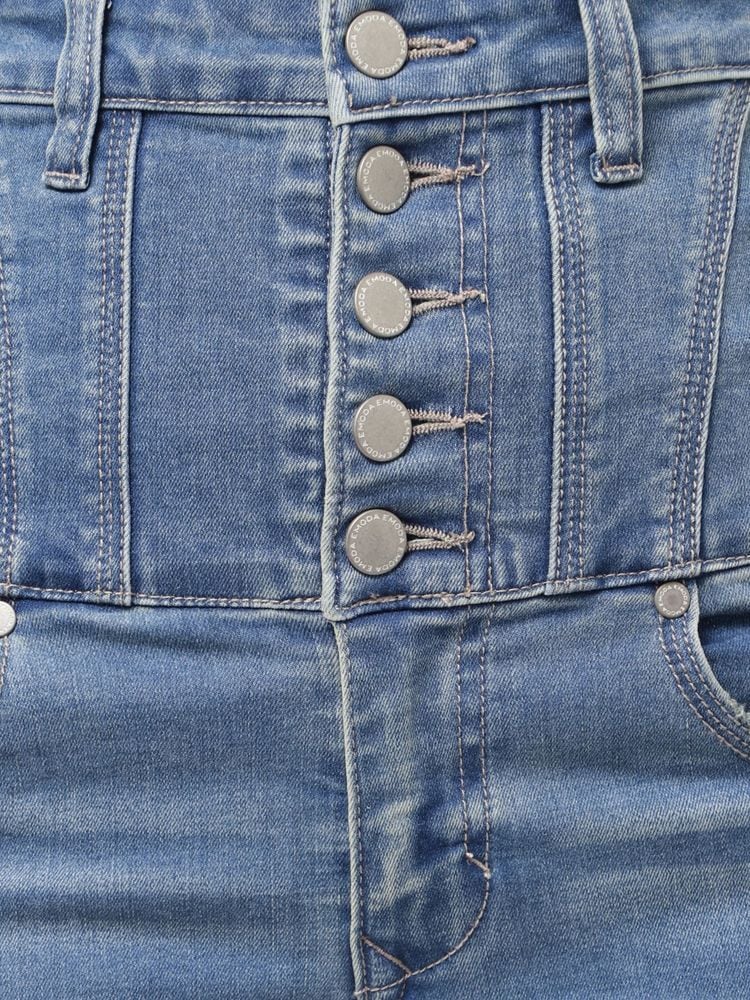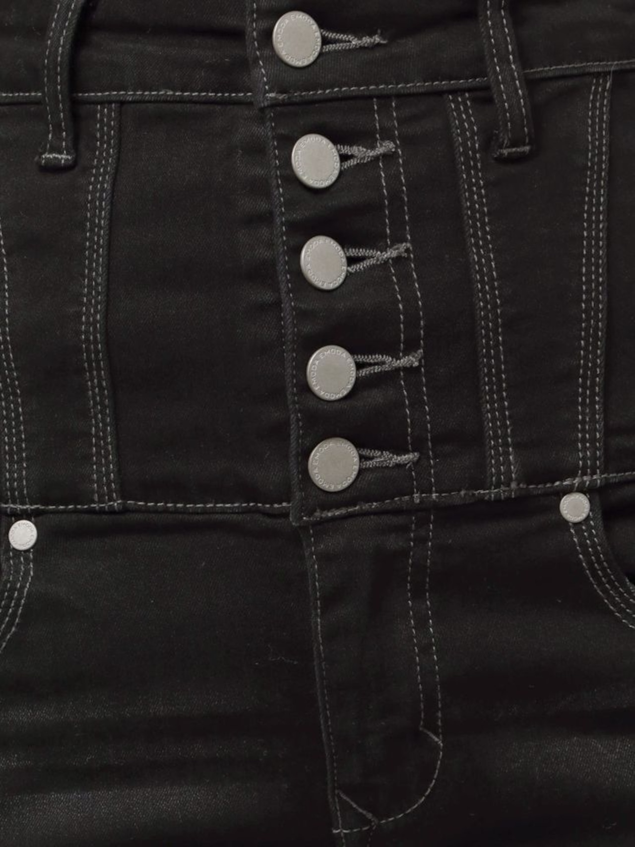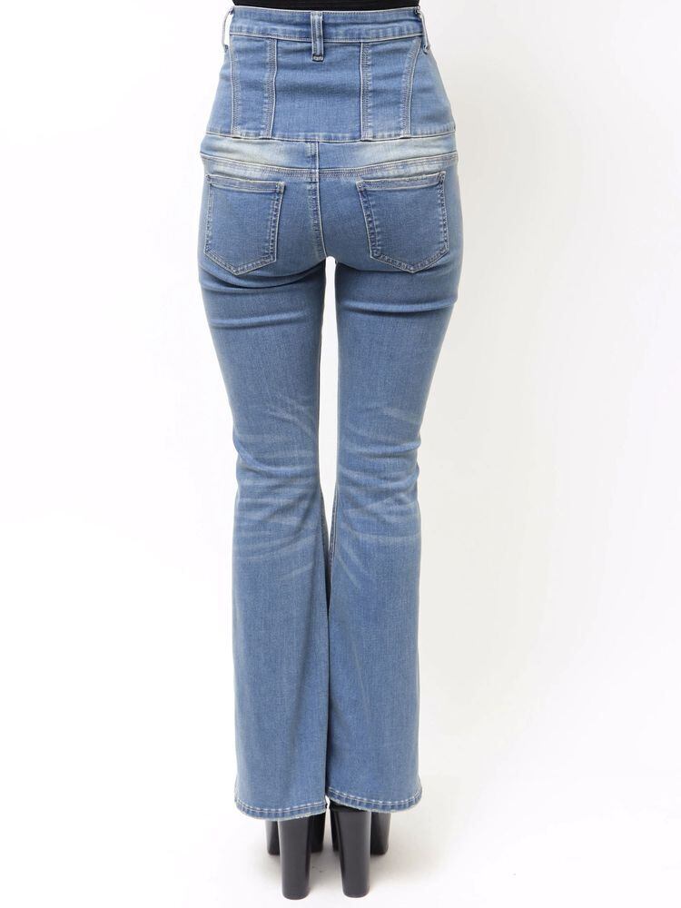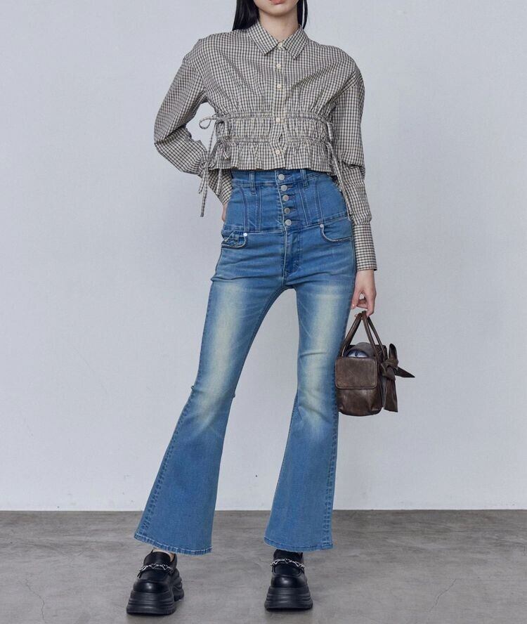 5つ釦デザインのスーパーハイウエストフレアパギンス