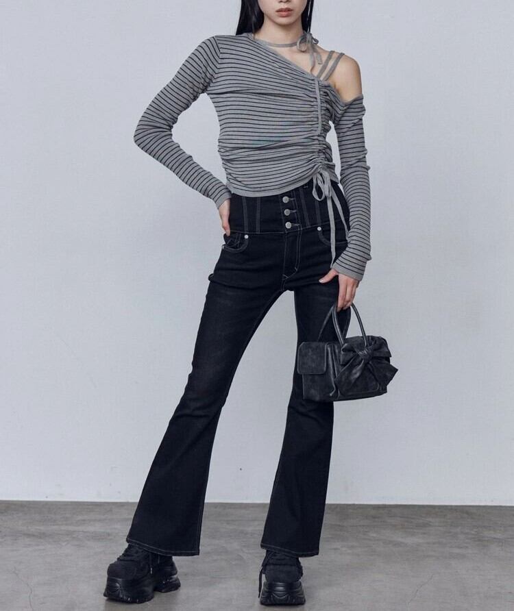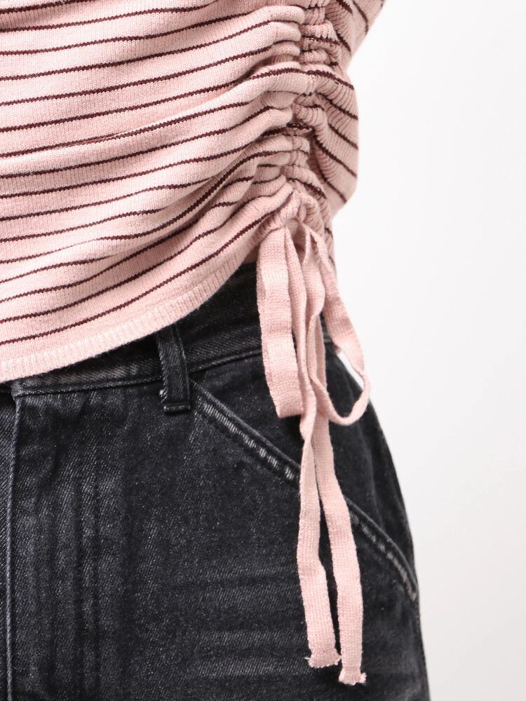 ショート丈なのでハイウエストボトムとの相性抜群。