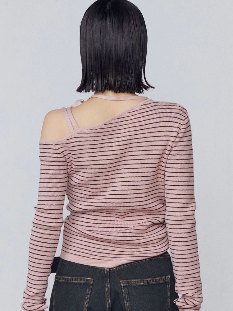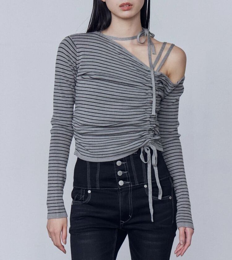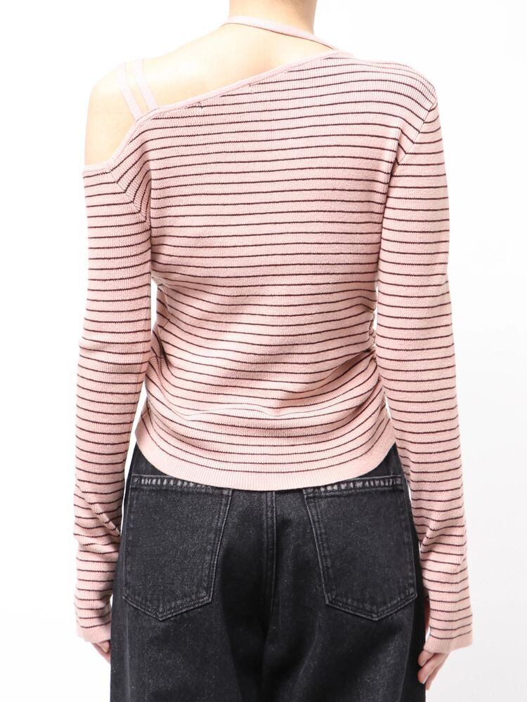 アシンメトリーネックがポイントのロングスリーブニット