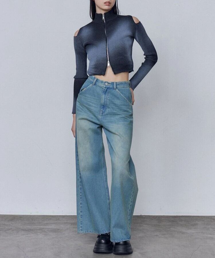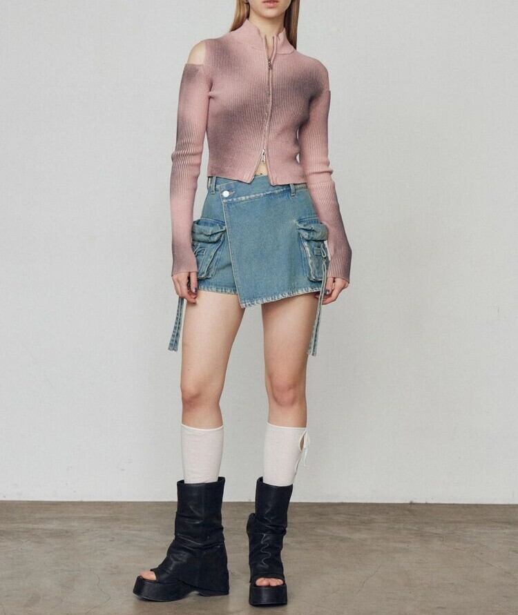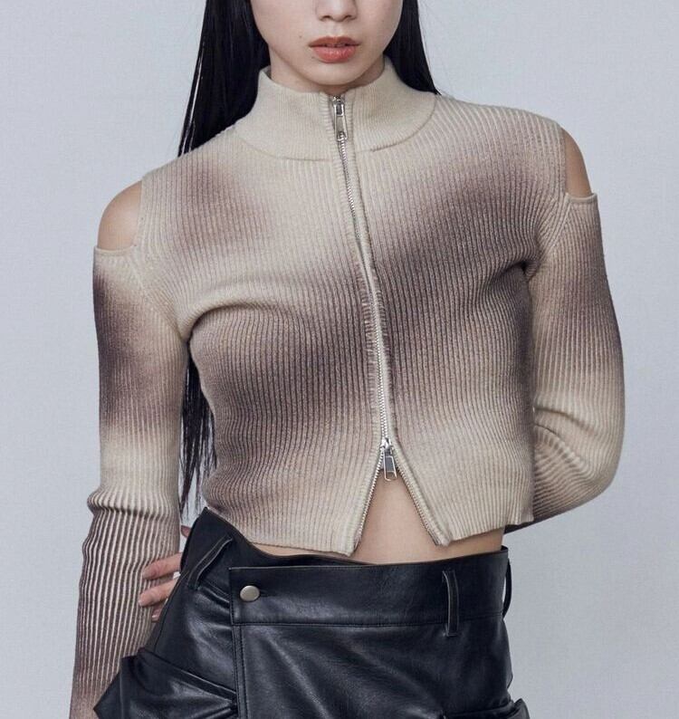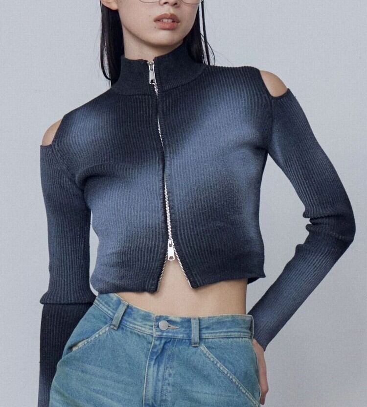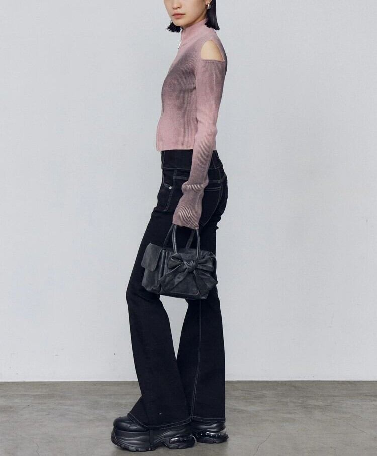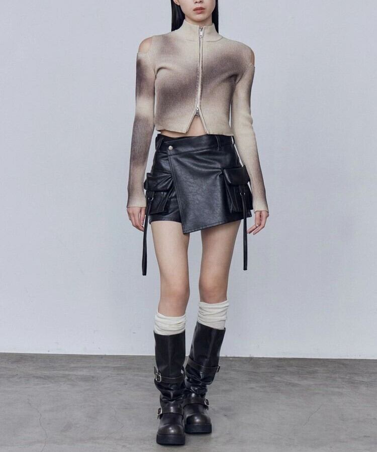 逆開ファスナーなので裾から開けて肌見せするスタイリングがおすすめ。