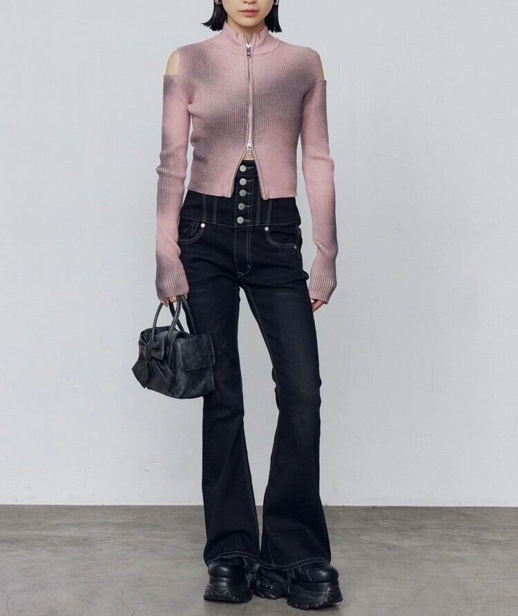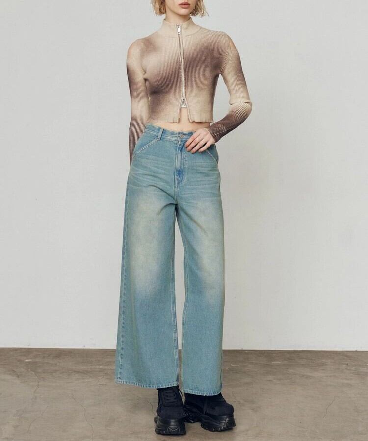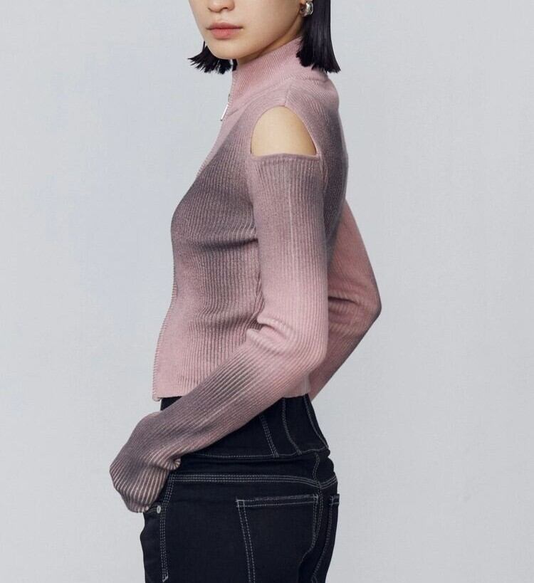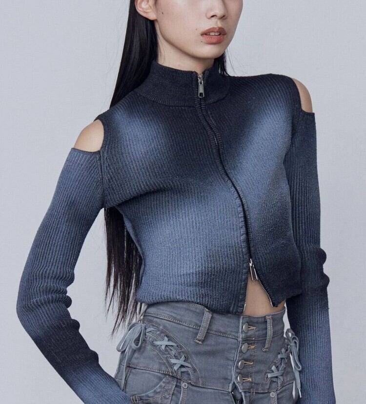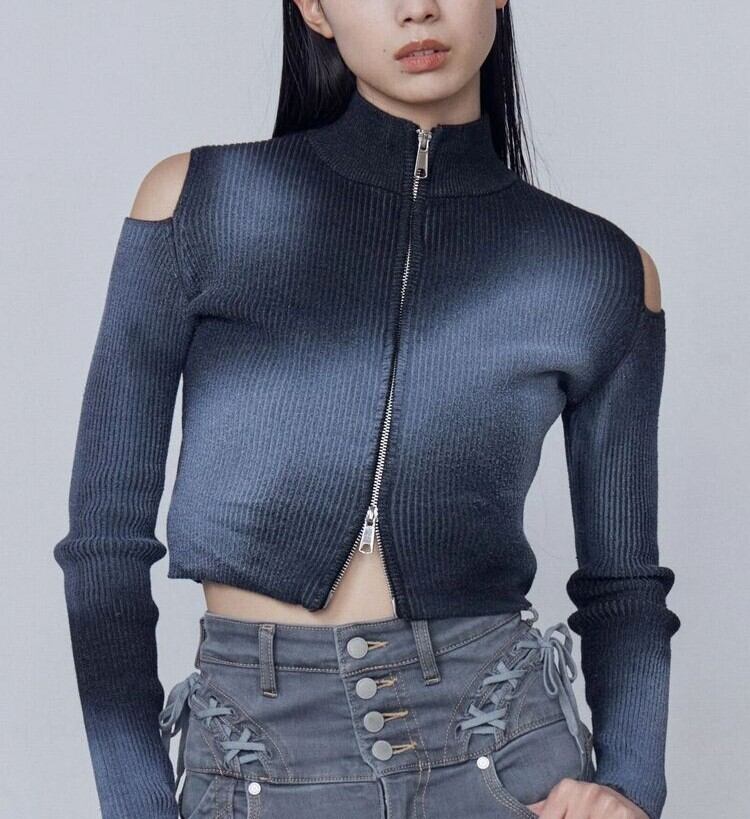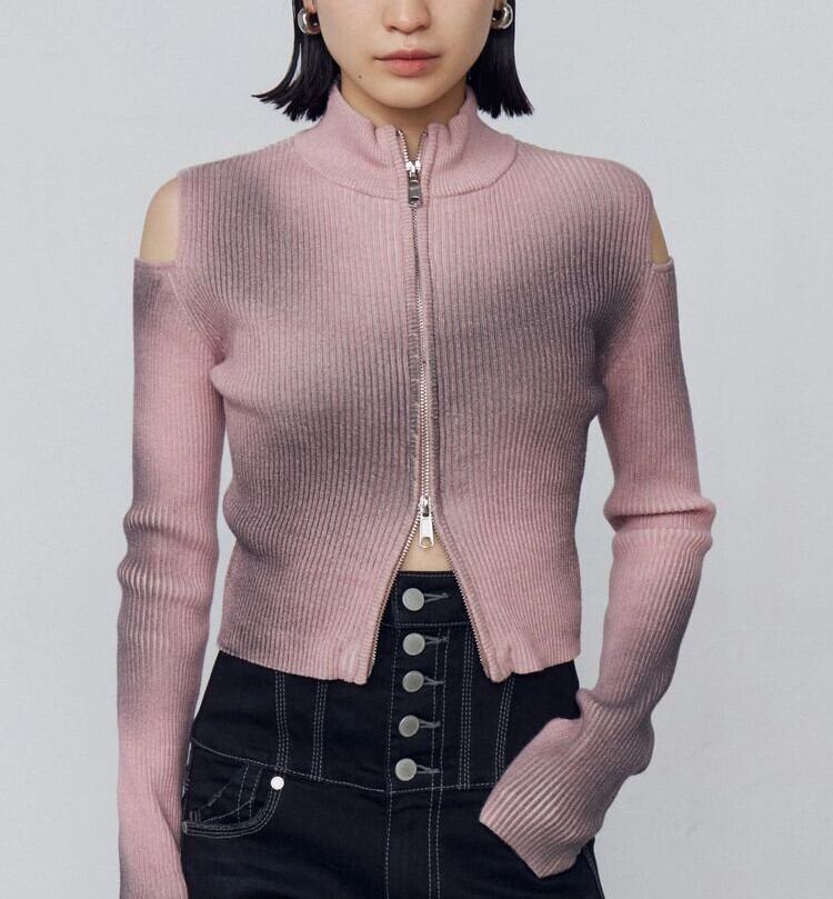 逆開ファスナーなので裾から開けて肌見せするスタイリングがおすすめ。
