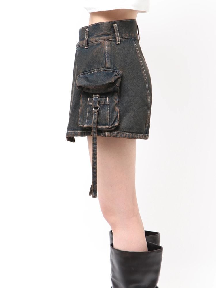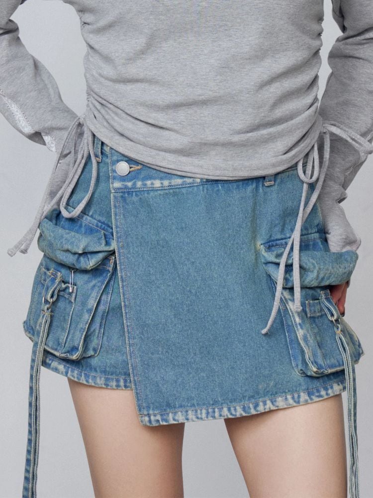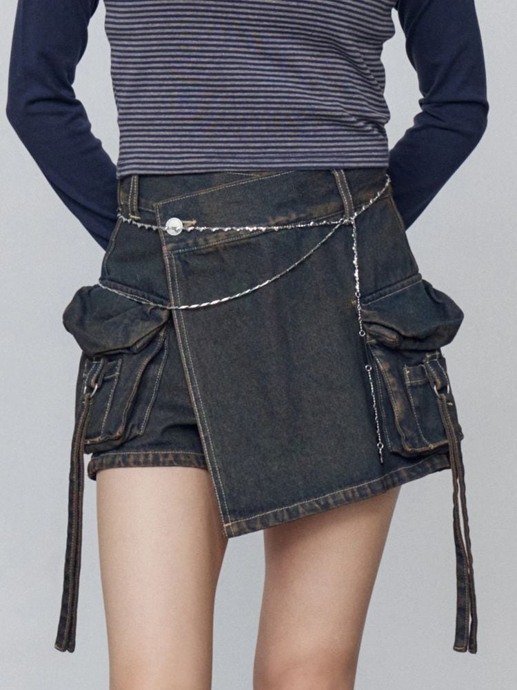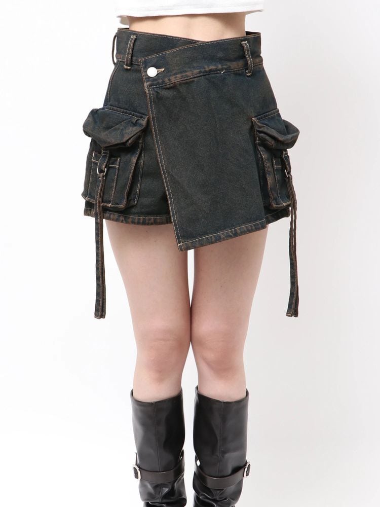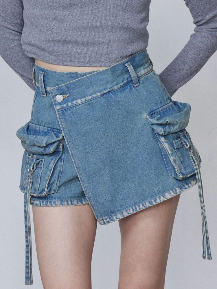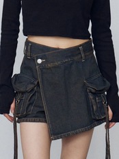 デニム素材のラップスカート風ショートパンツ