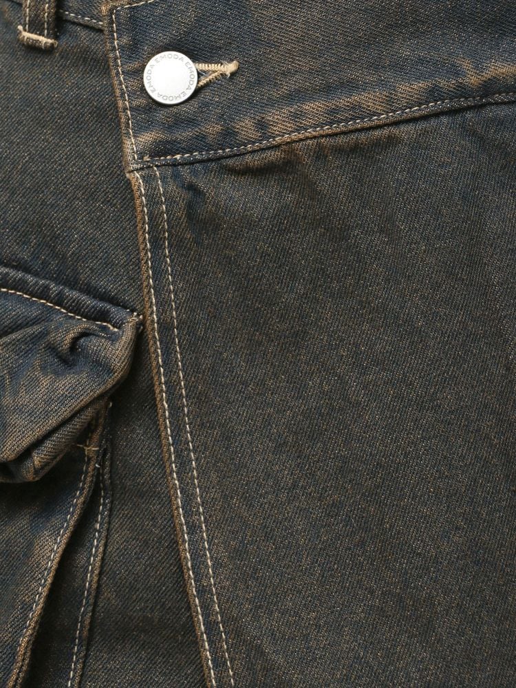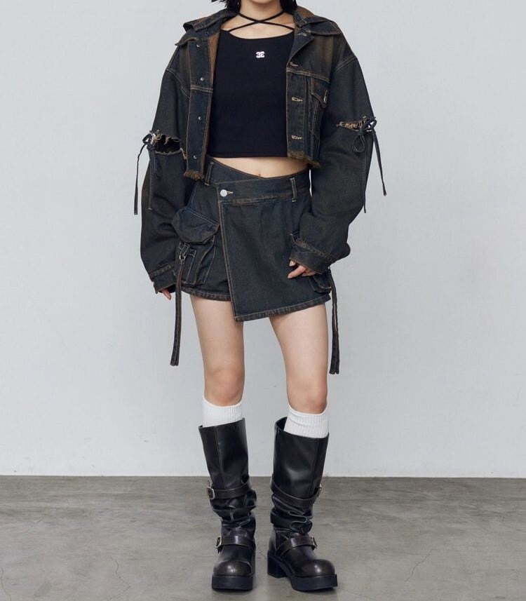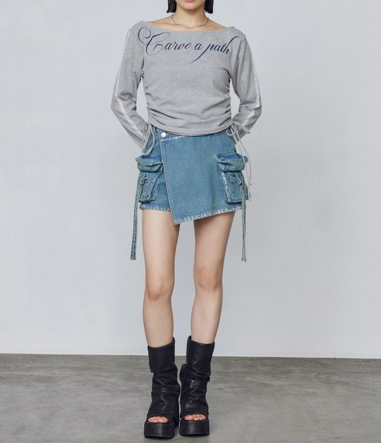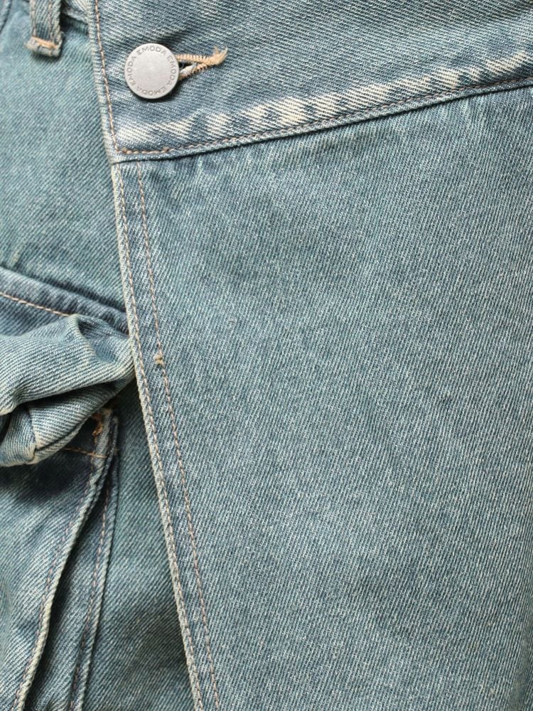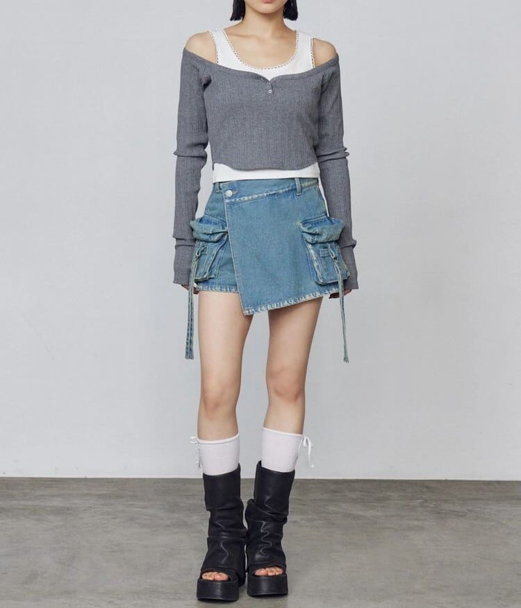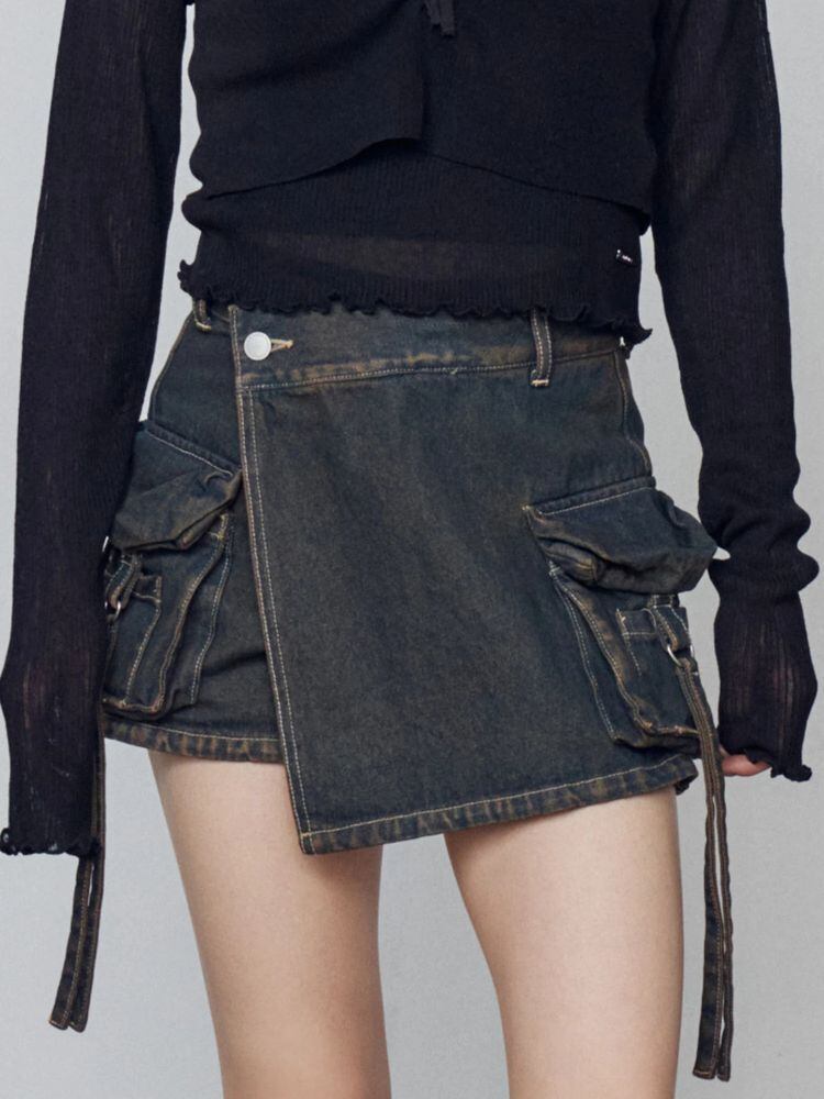 デニム素材のラップスカート風ショートパンツ