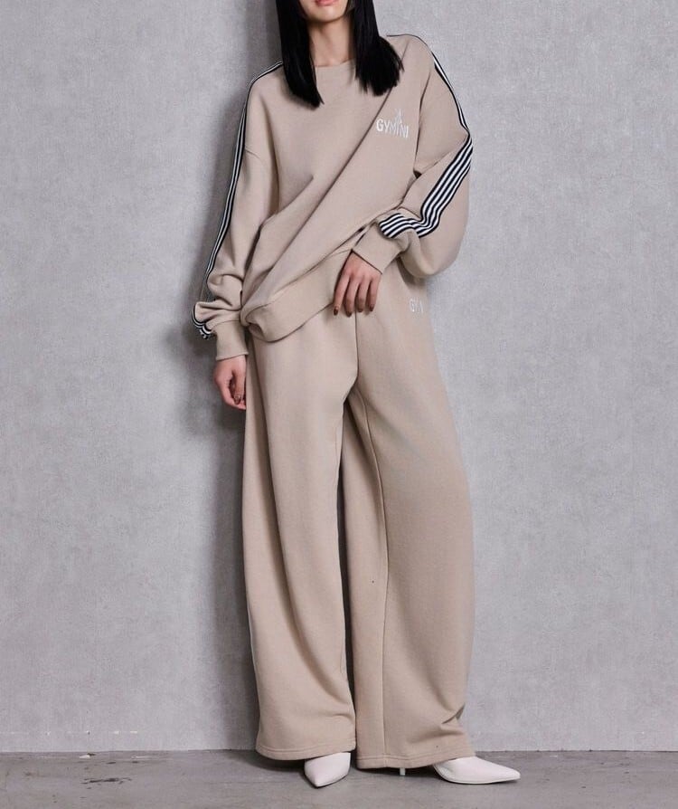 お揃いデザインのスウェットトップスでSETUP着用や、タイトショートトップス合わせが◎