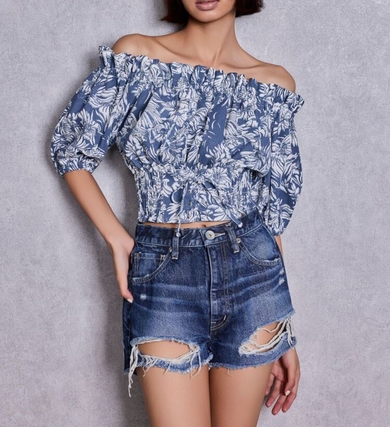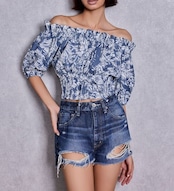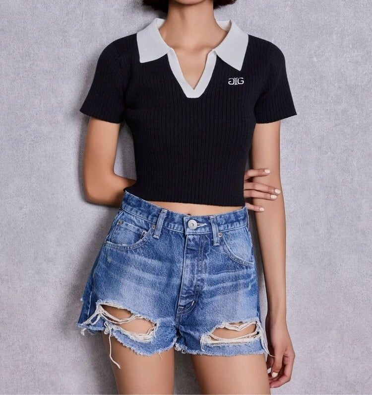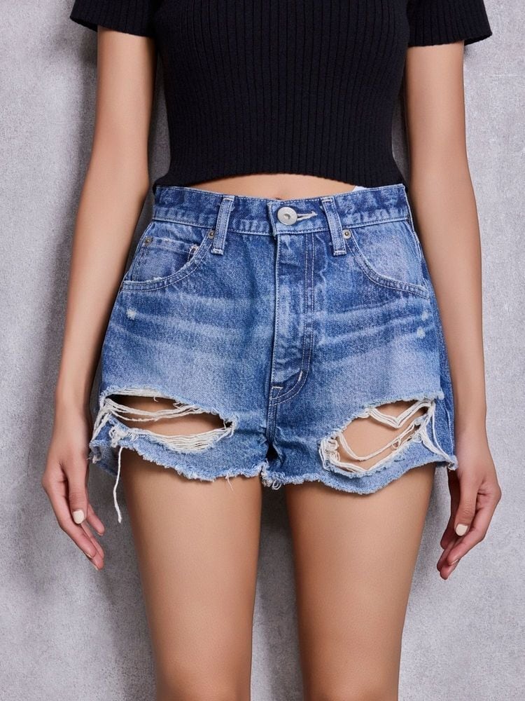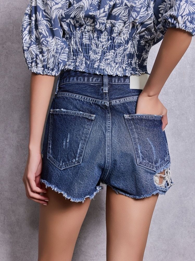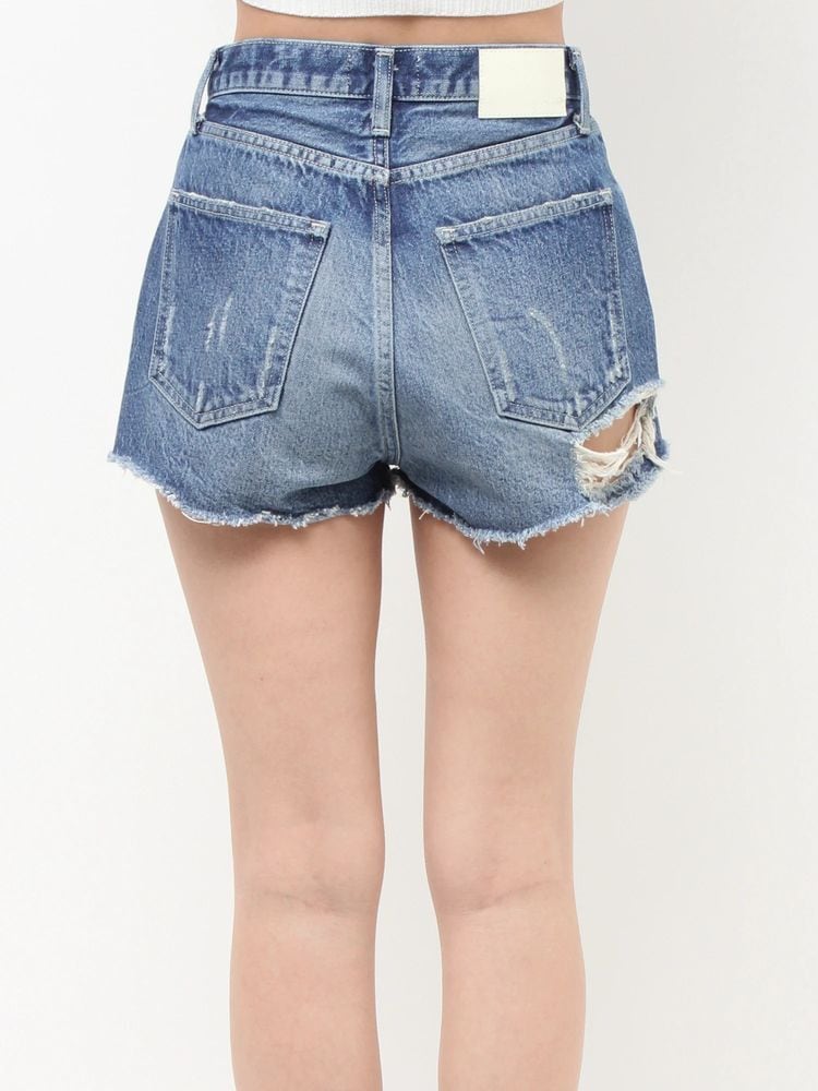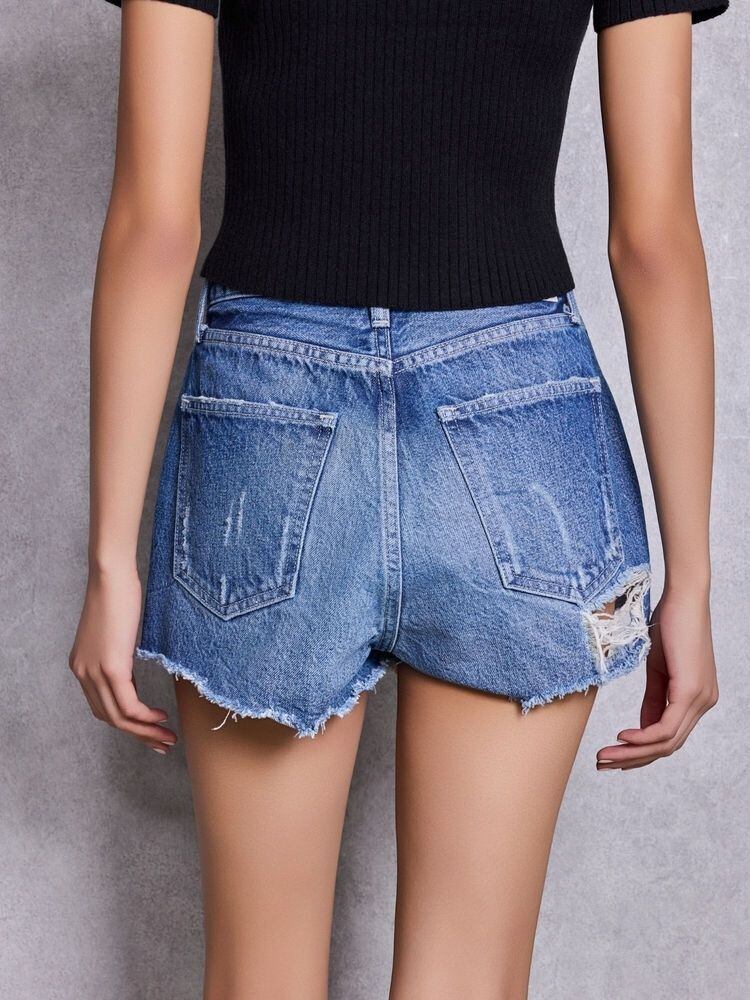 【GYDA】ハイウエストBACK RIPPEDデニムショートパンツ