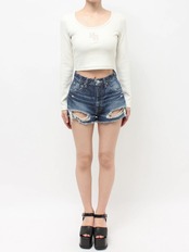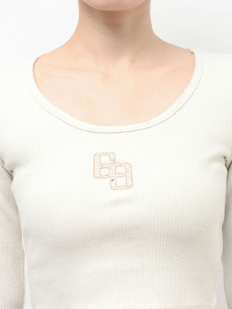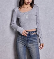 【GYDA】GGロゴラインストーンラメテレコトップス