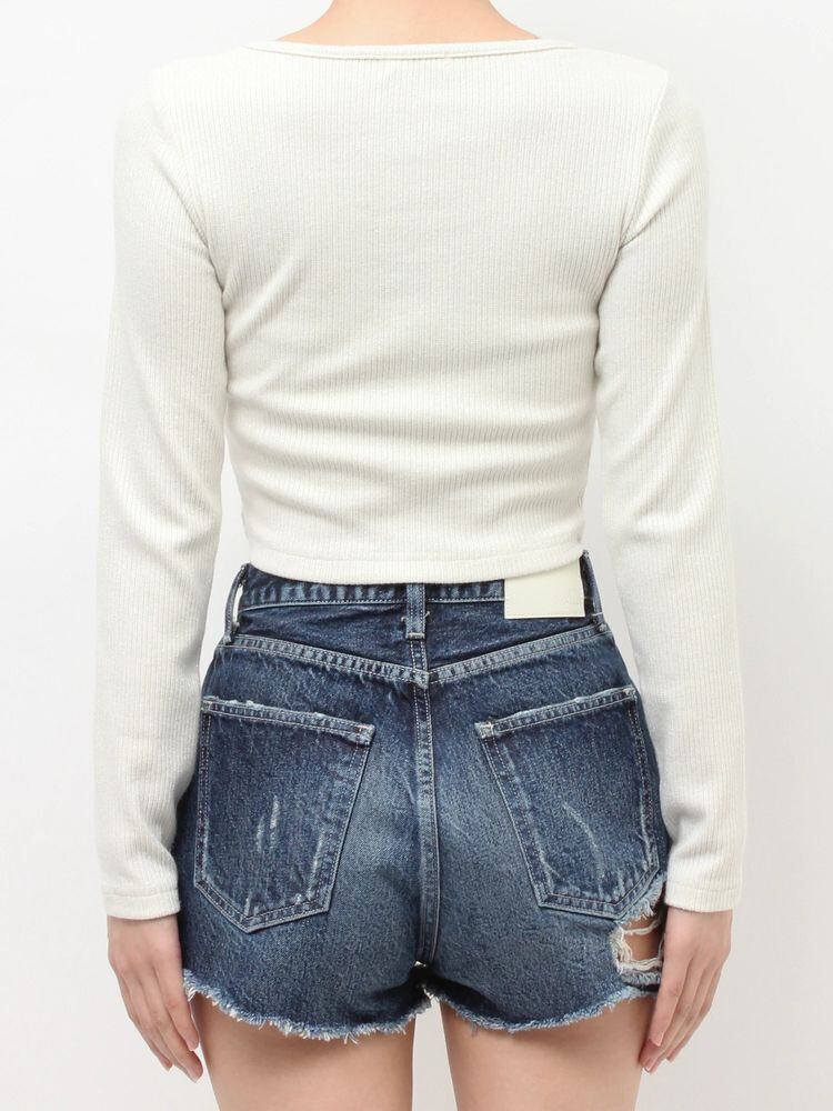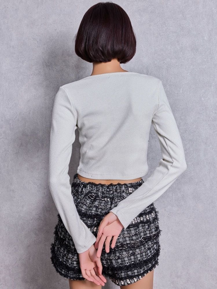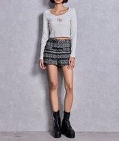 ラメテレコ素材を使用したショート丈のシンプルで使いやすいトップス。