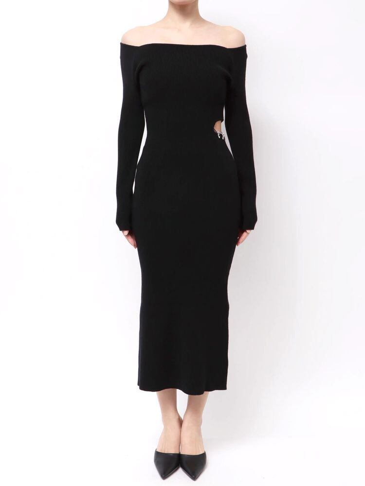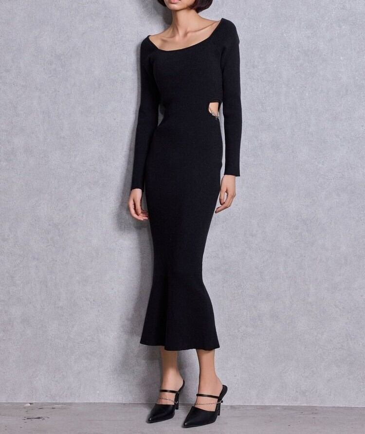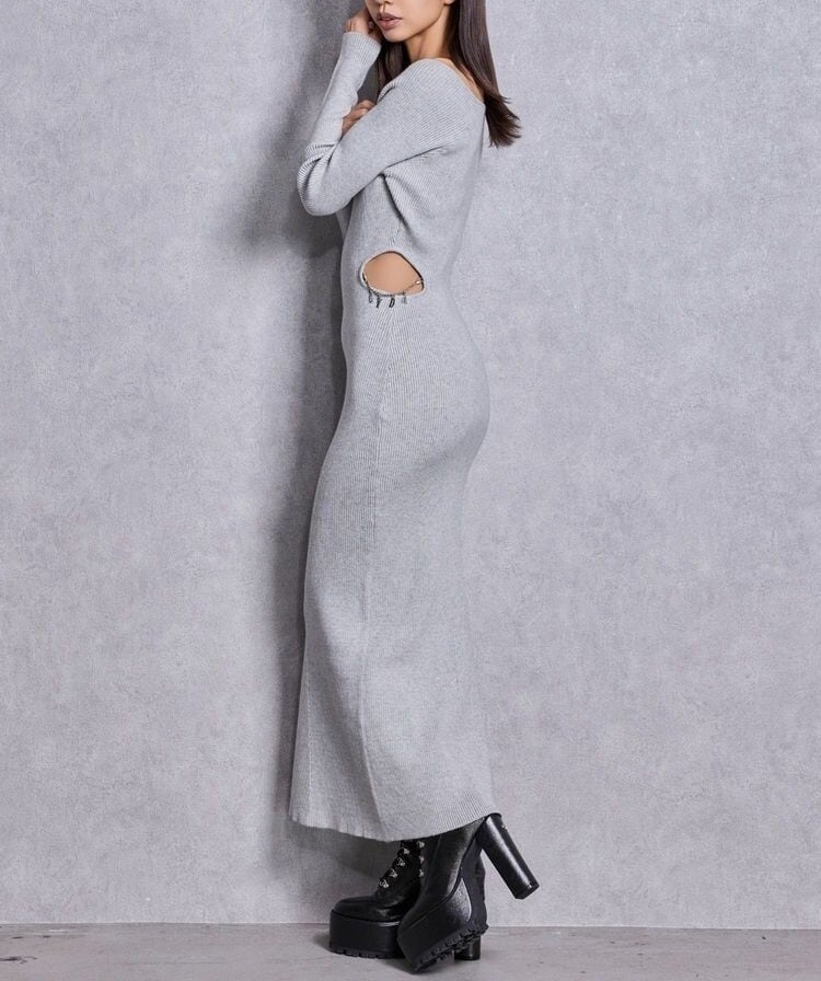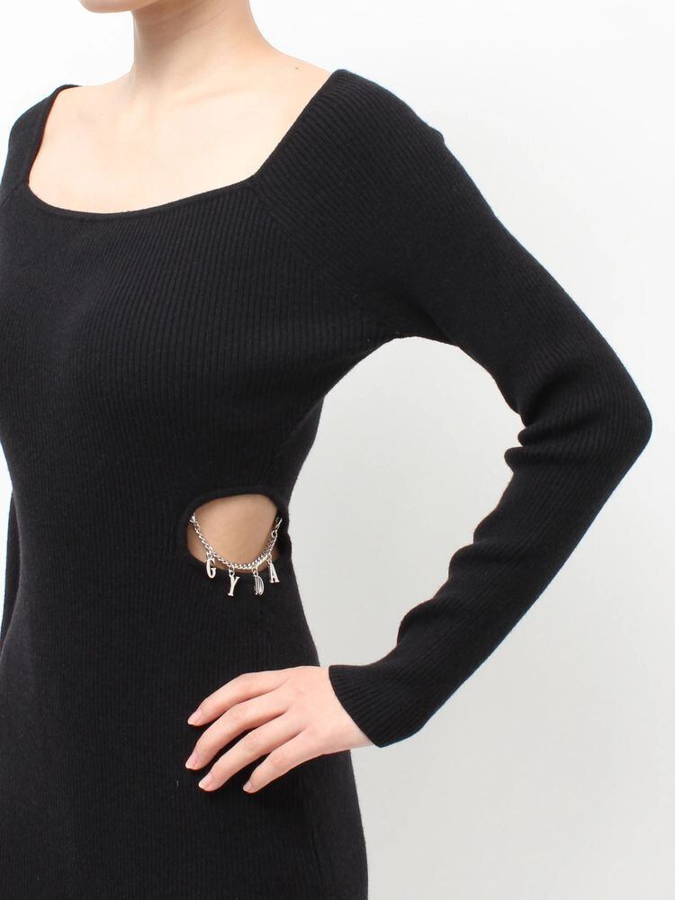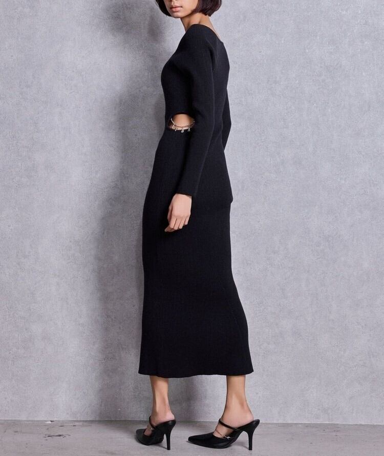 【GYDA】GYDA chain SIDE OPENロングフレアニットワンピース