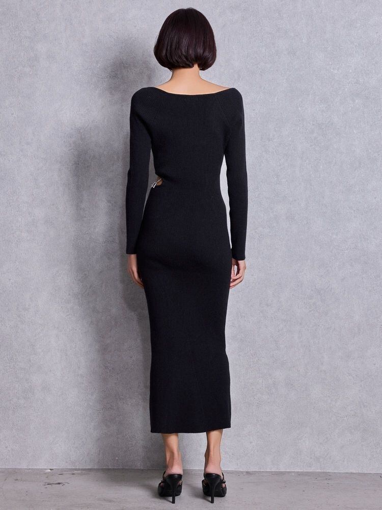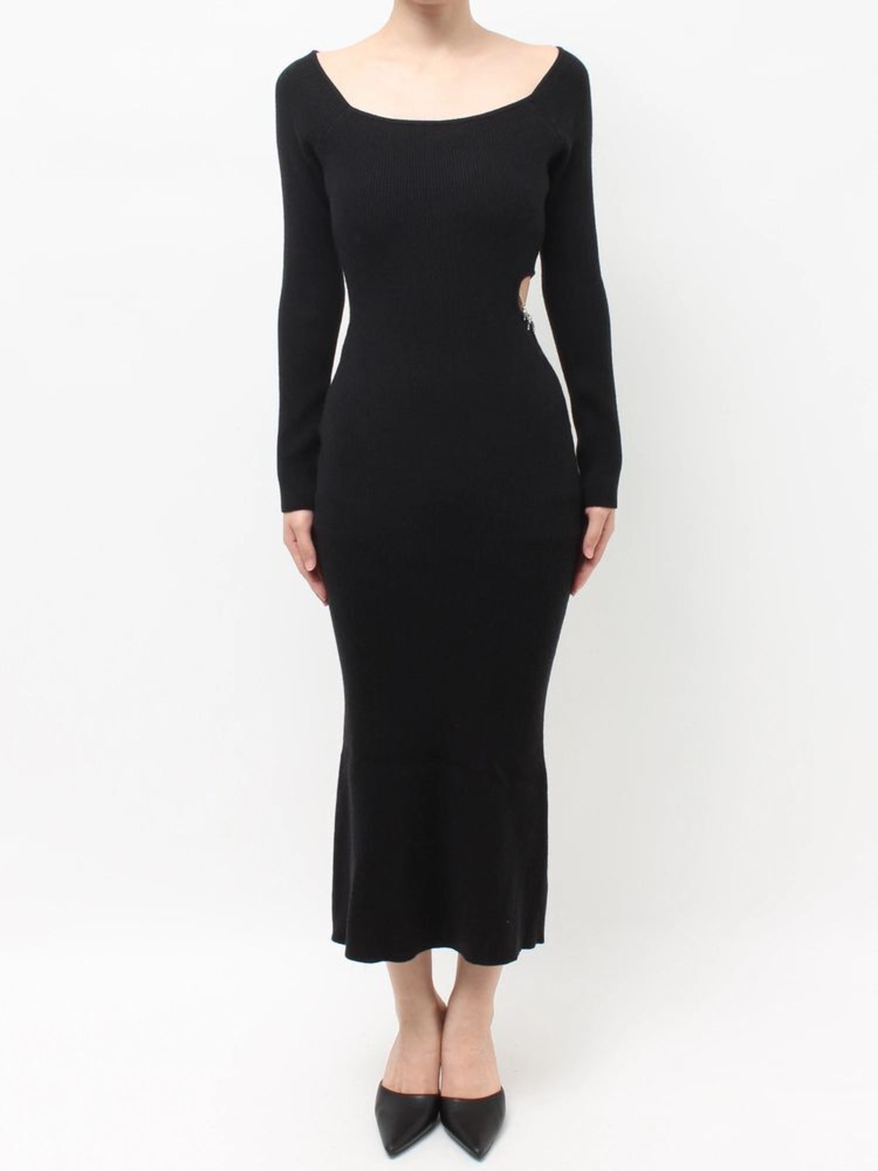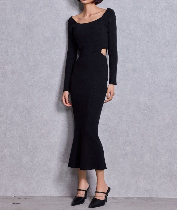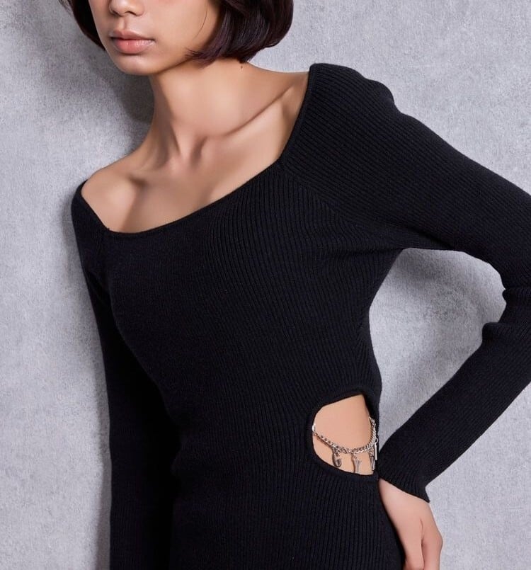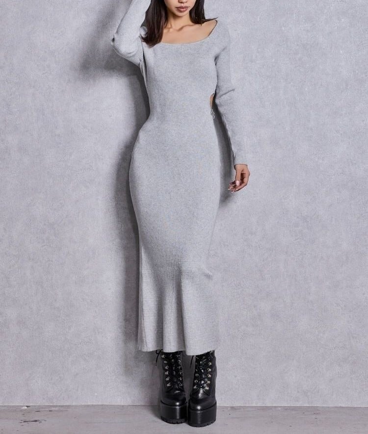 【GYDA】GYDA chain SIDE OPENロングフレアニットワンピース