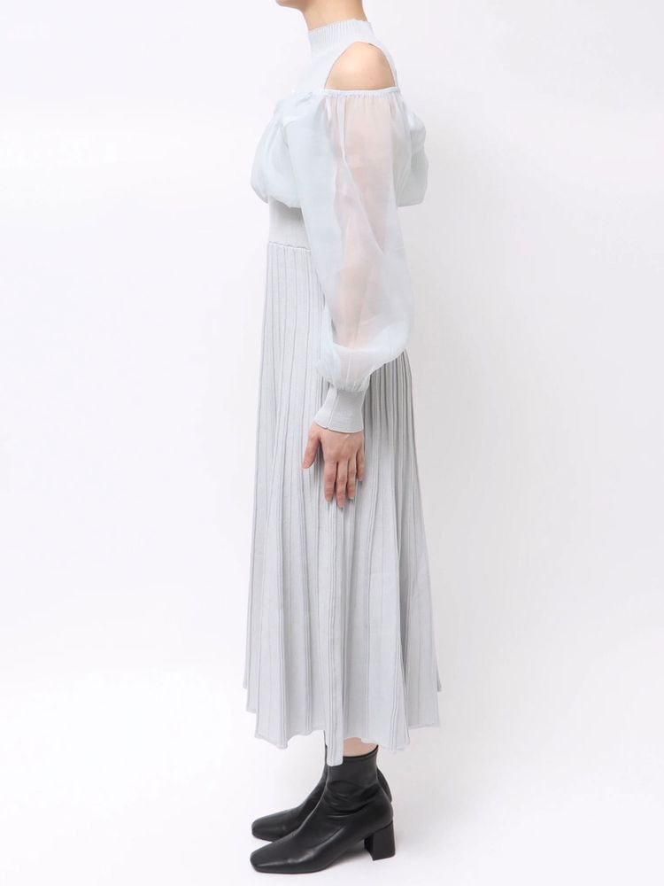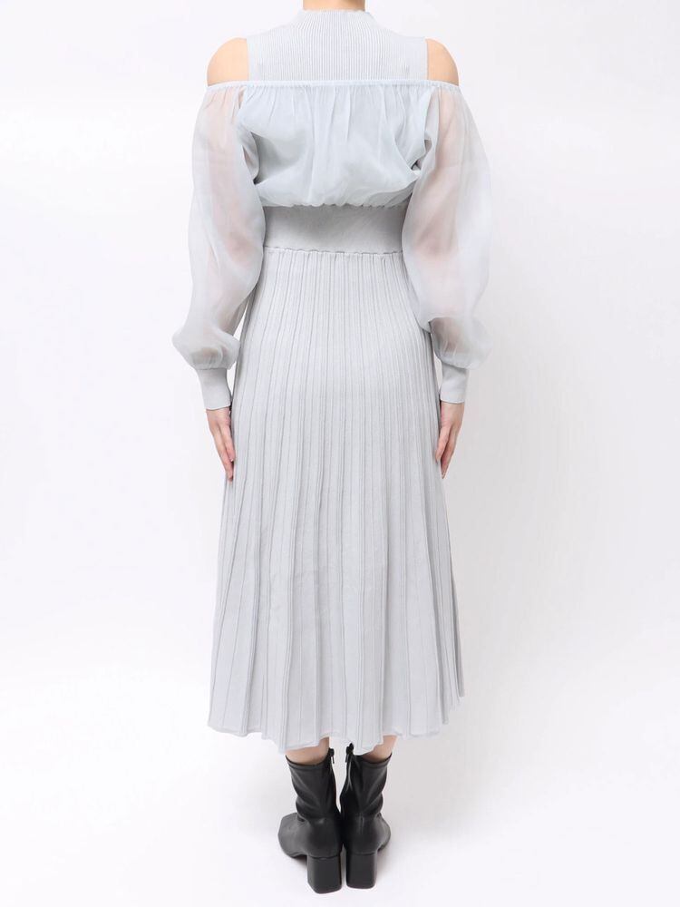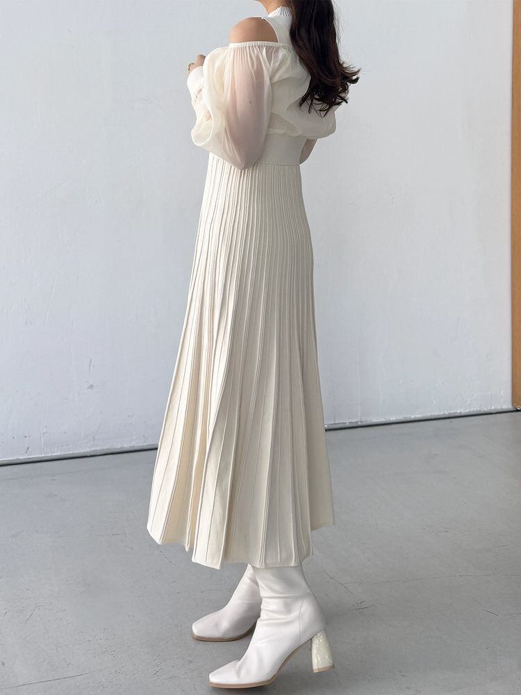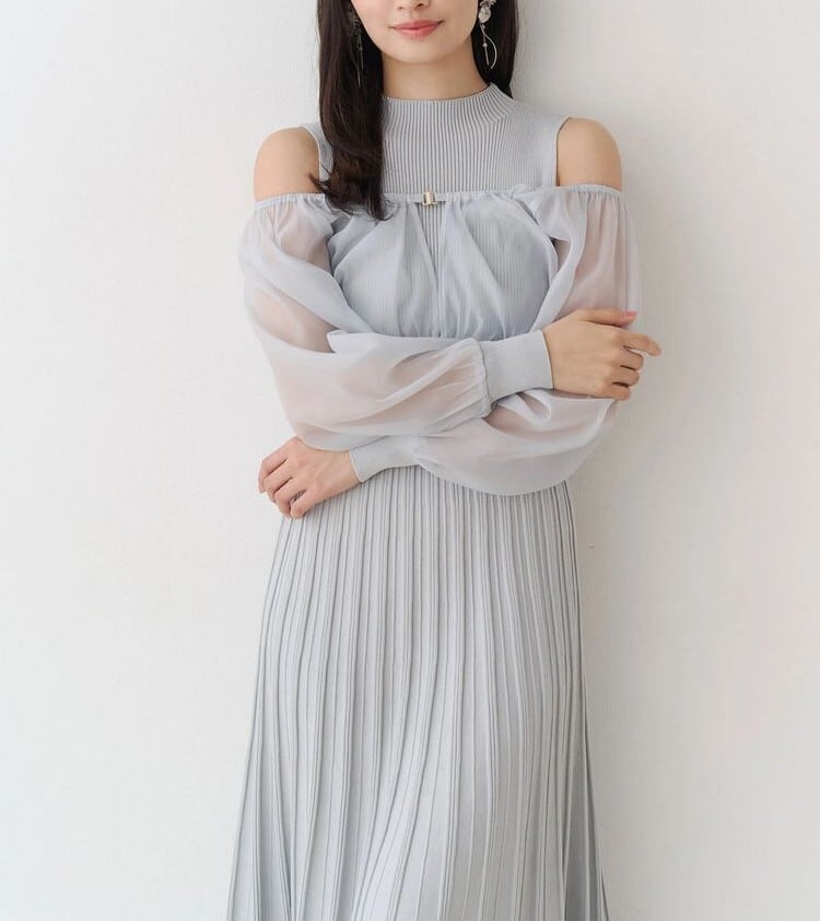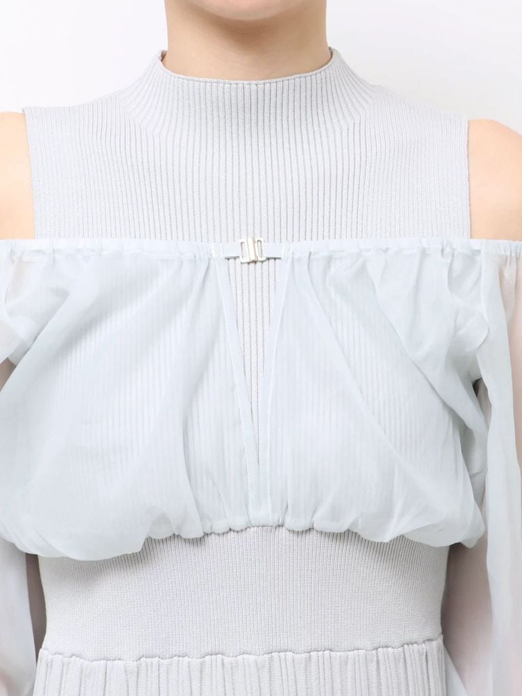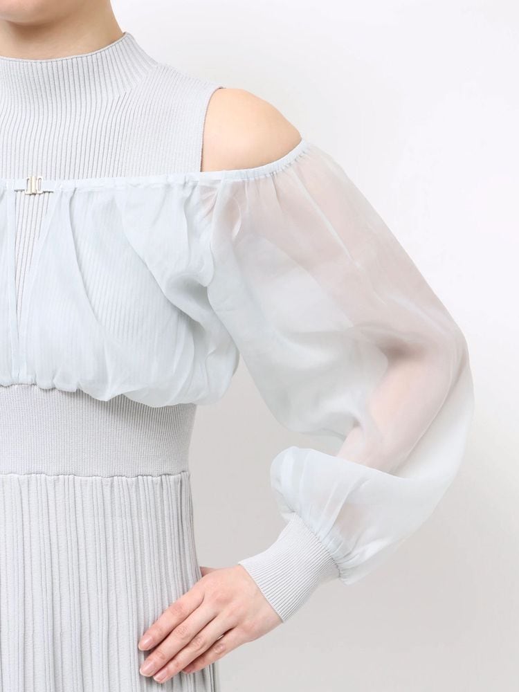 オーガンジー部分はぐるっとゴム仕様になっているため、肩を落としてオープンショルダーとしても着用可能。