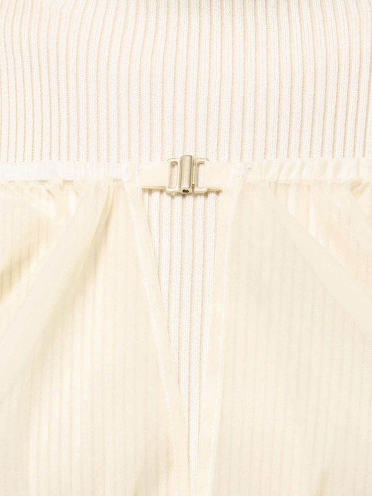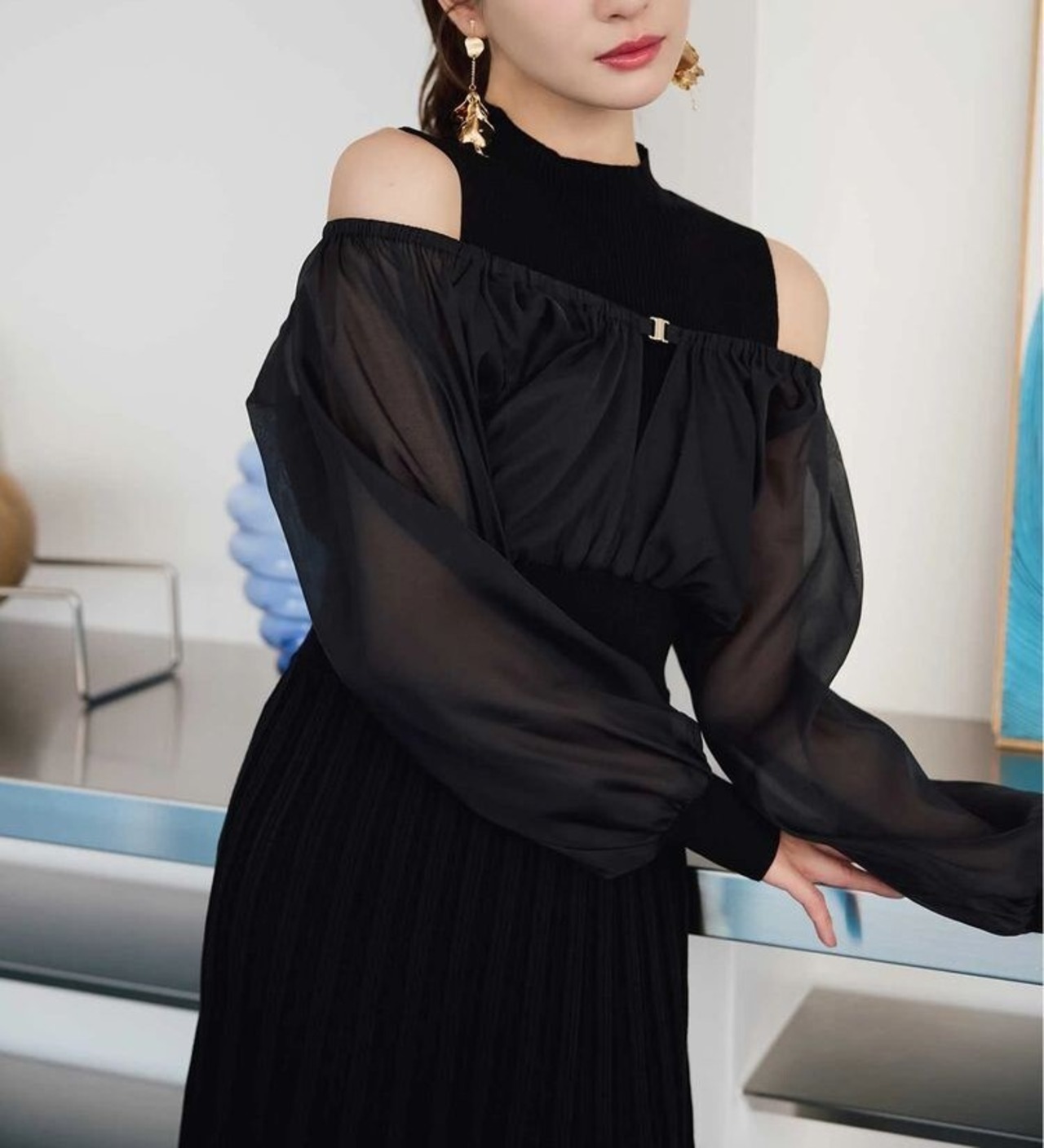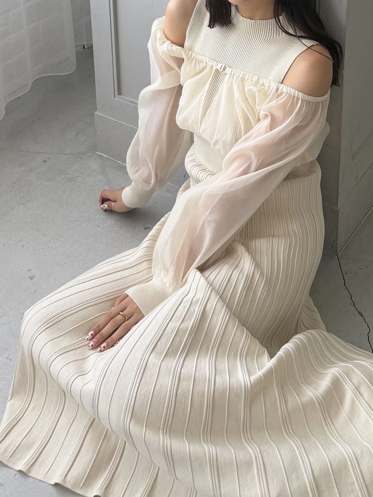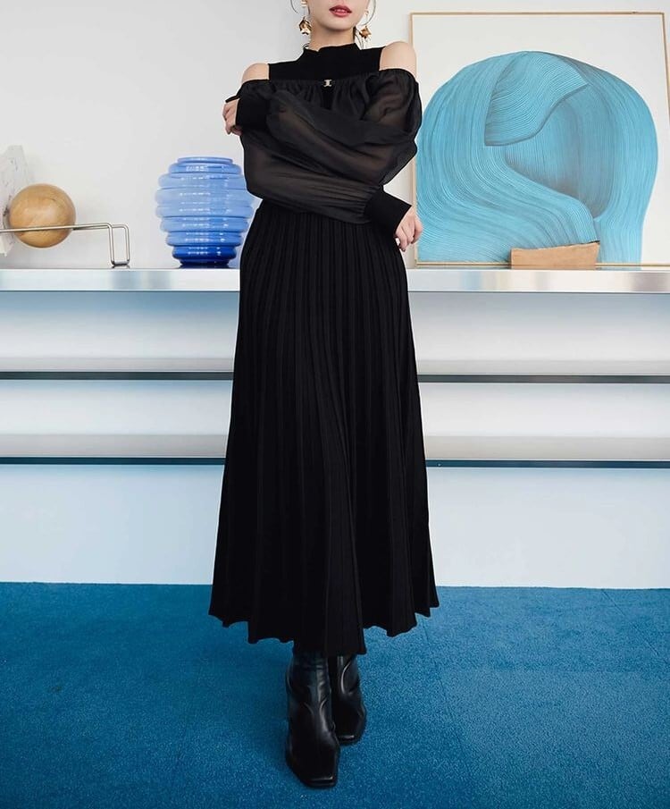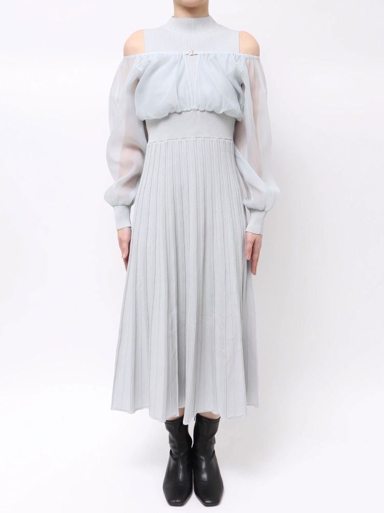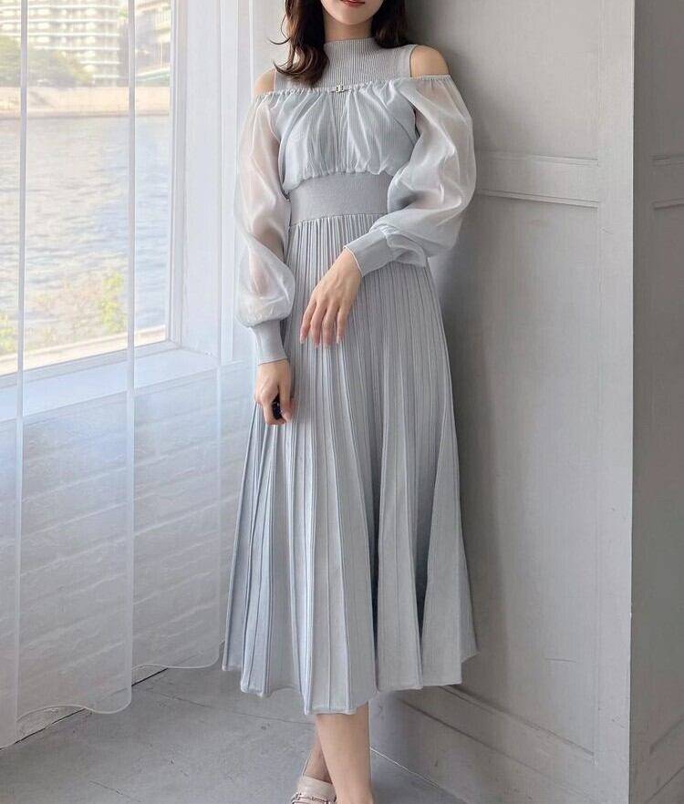 オーガンジー部分はぐるっとゴム仕様になっているため、肩を落としてオープンショルダーとしても着用可能。