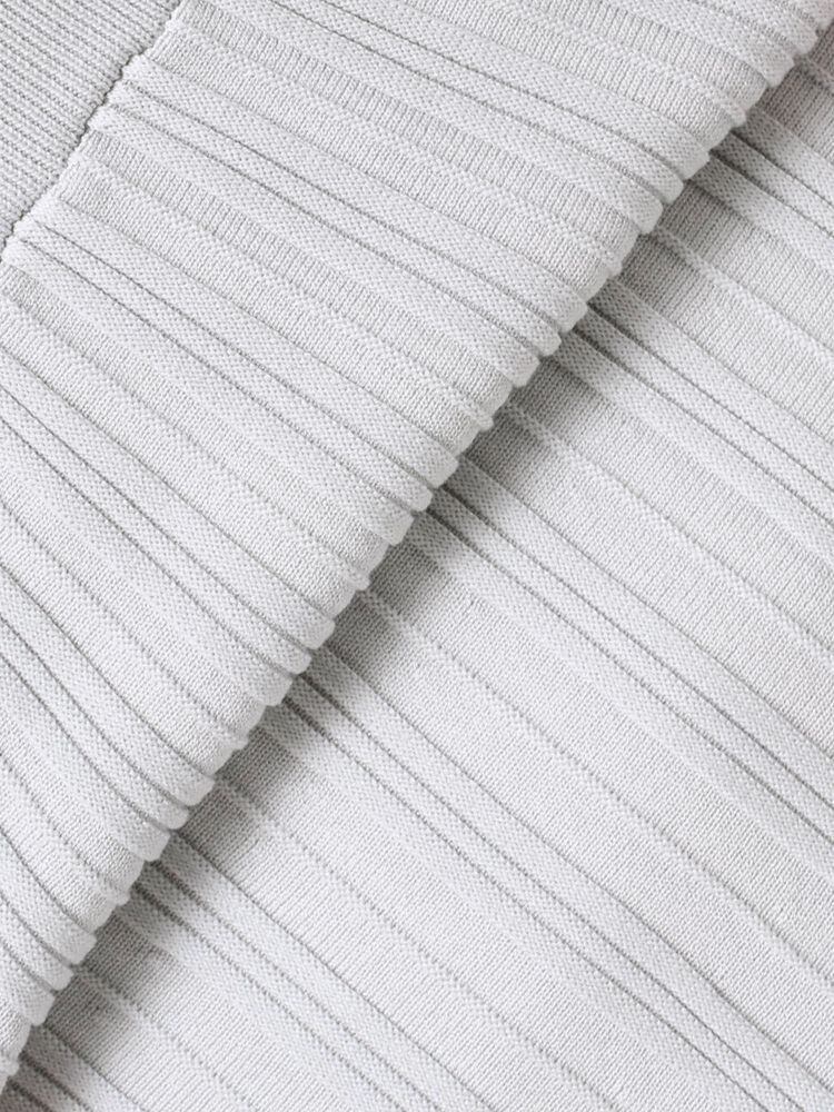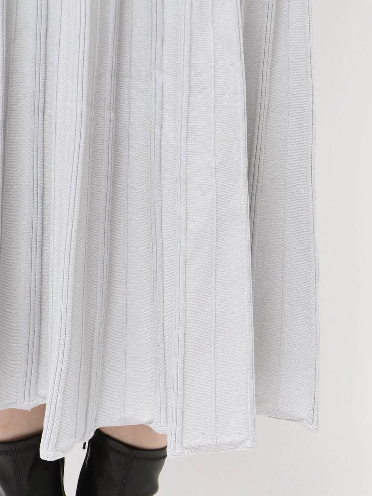 スカート部分にはプリーツのように見える編み柄を入れ、縦ラインを強調することで脚長効果も◎