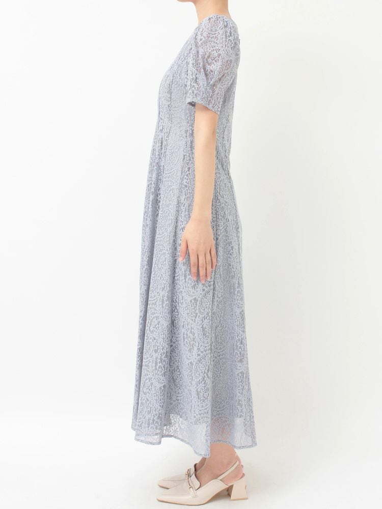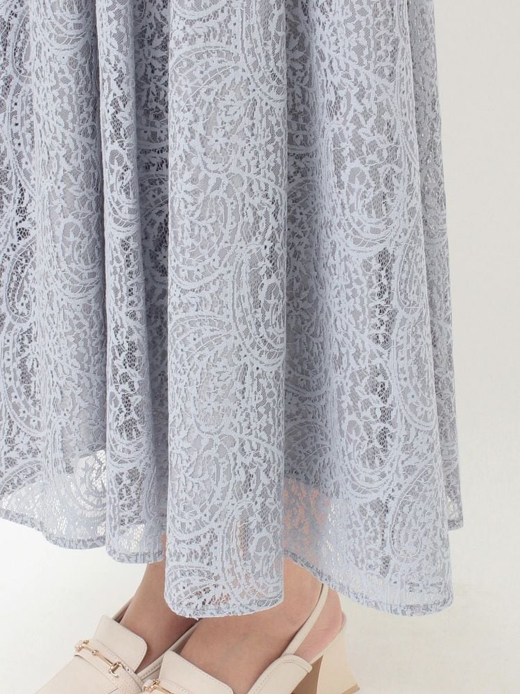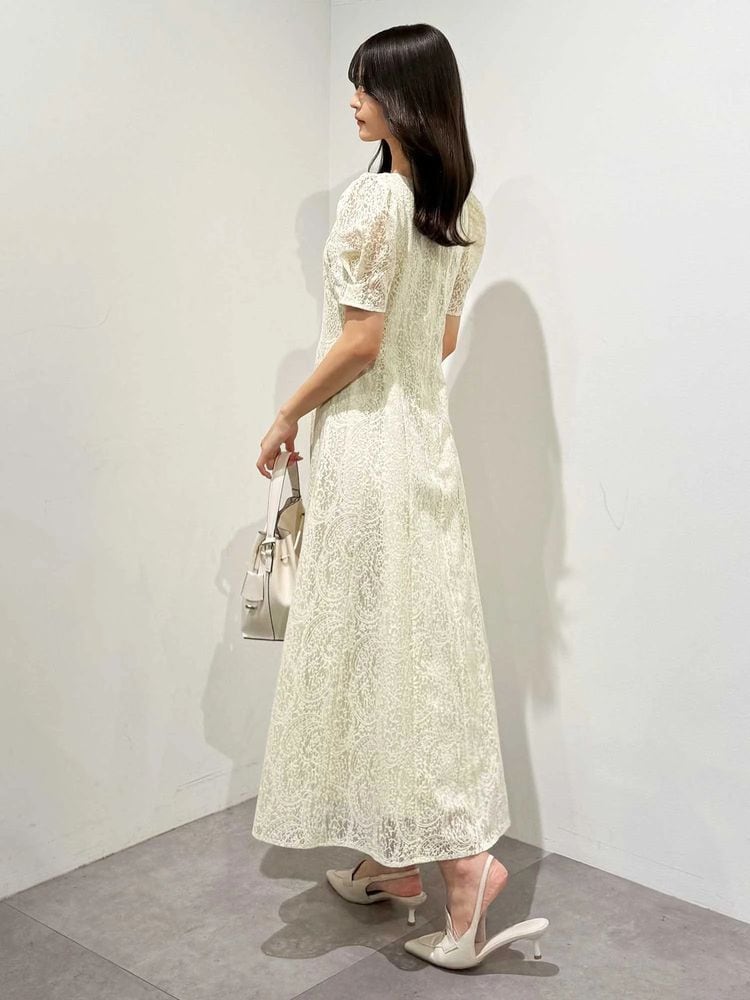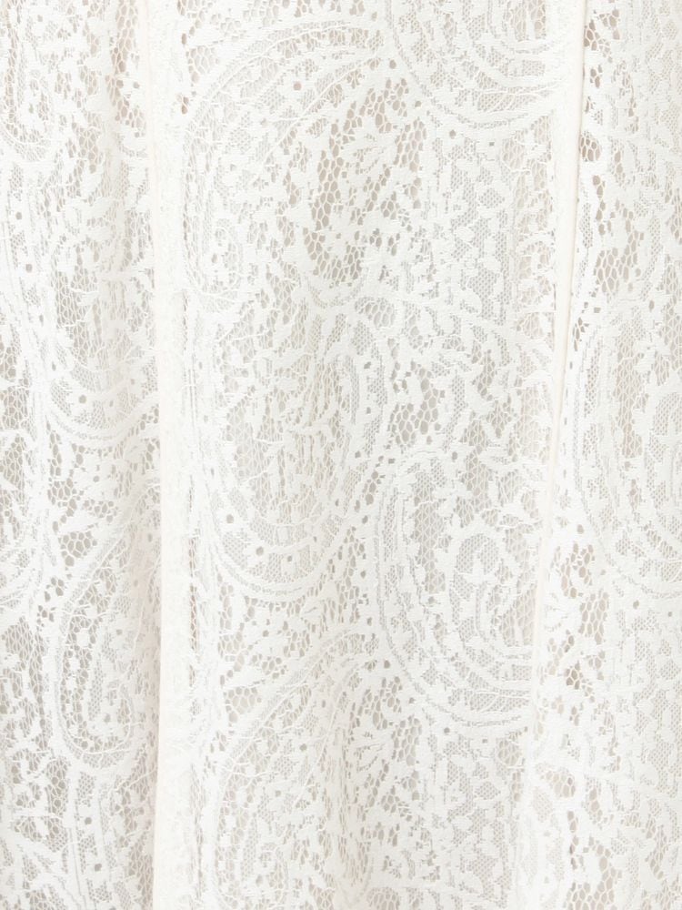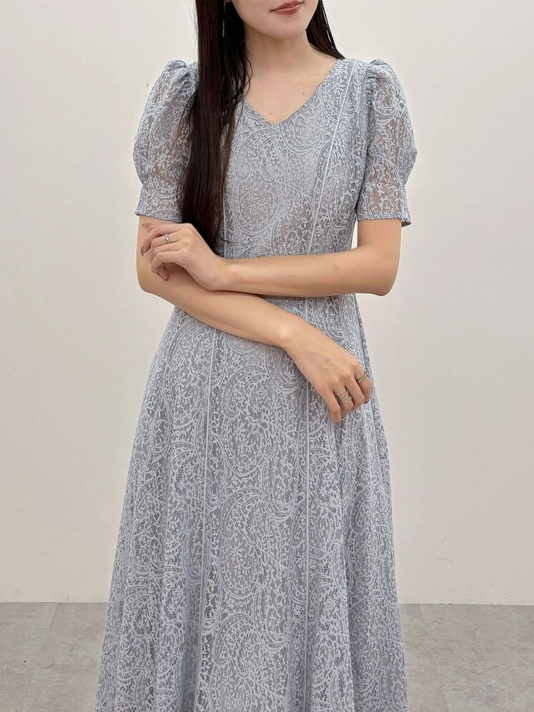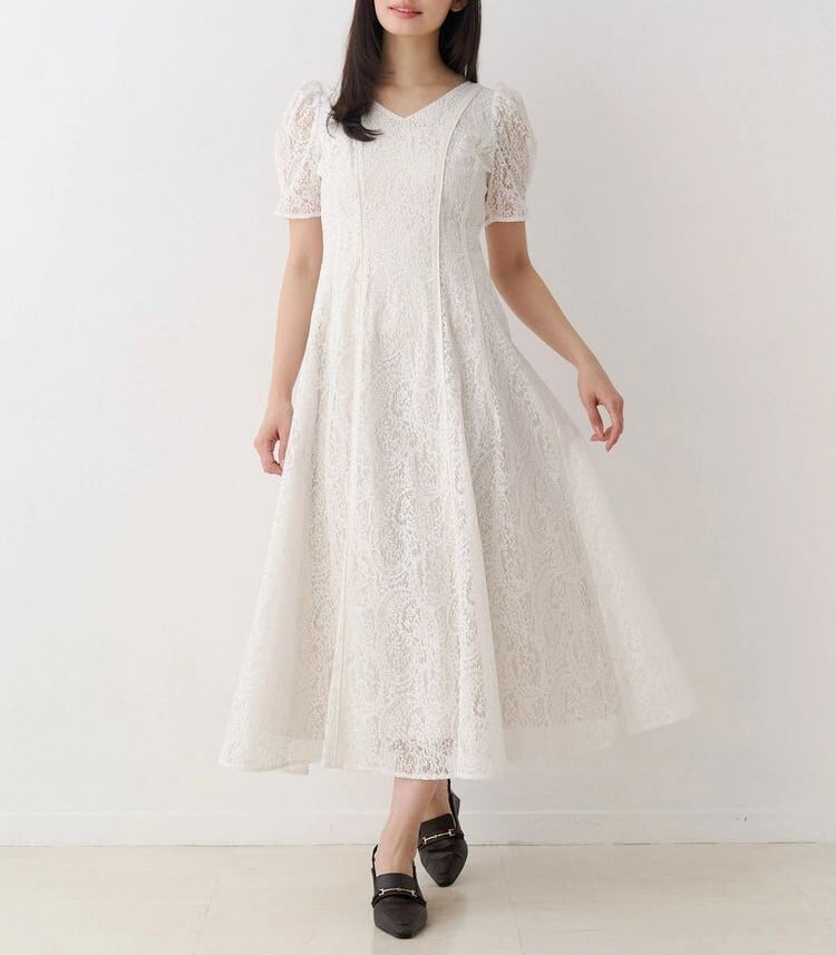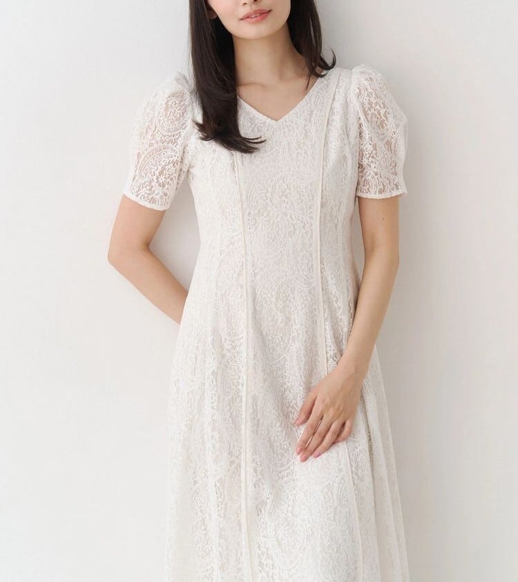 ペイズリーモチーフの繊細なレースが目を惹く、春にぴったりのフィット&フレアワンピース。