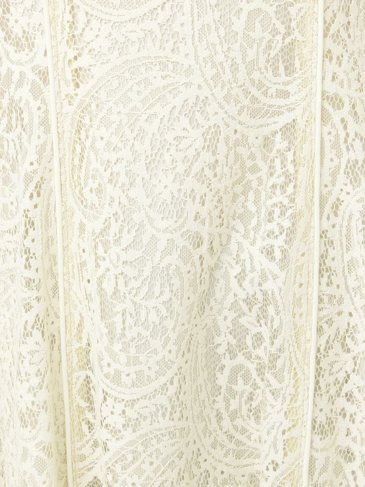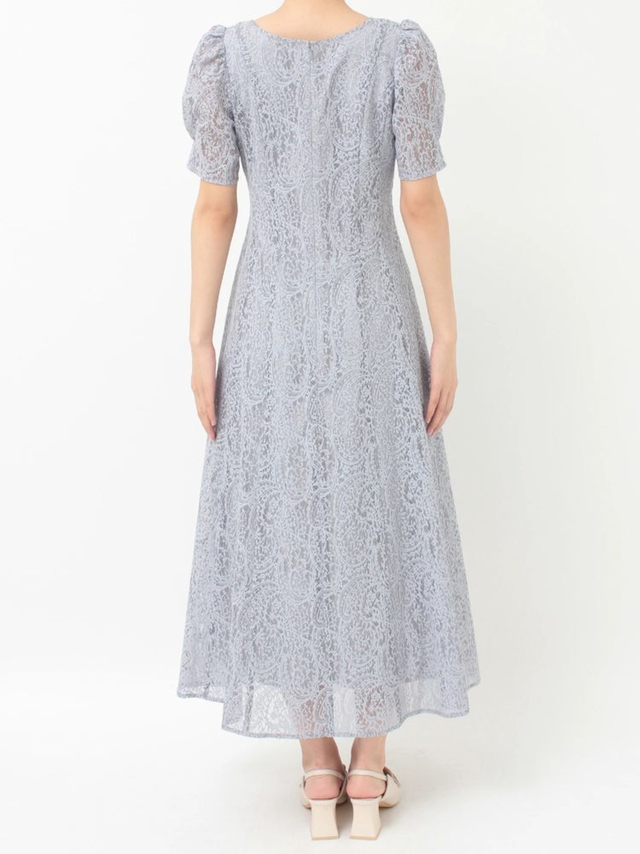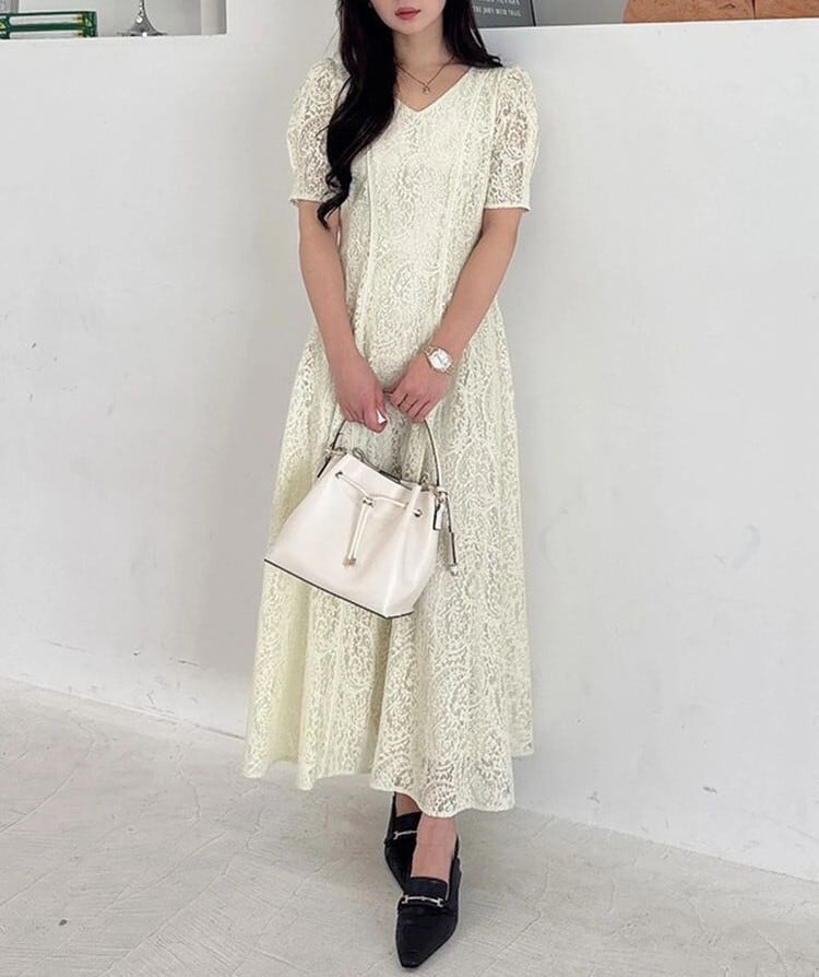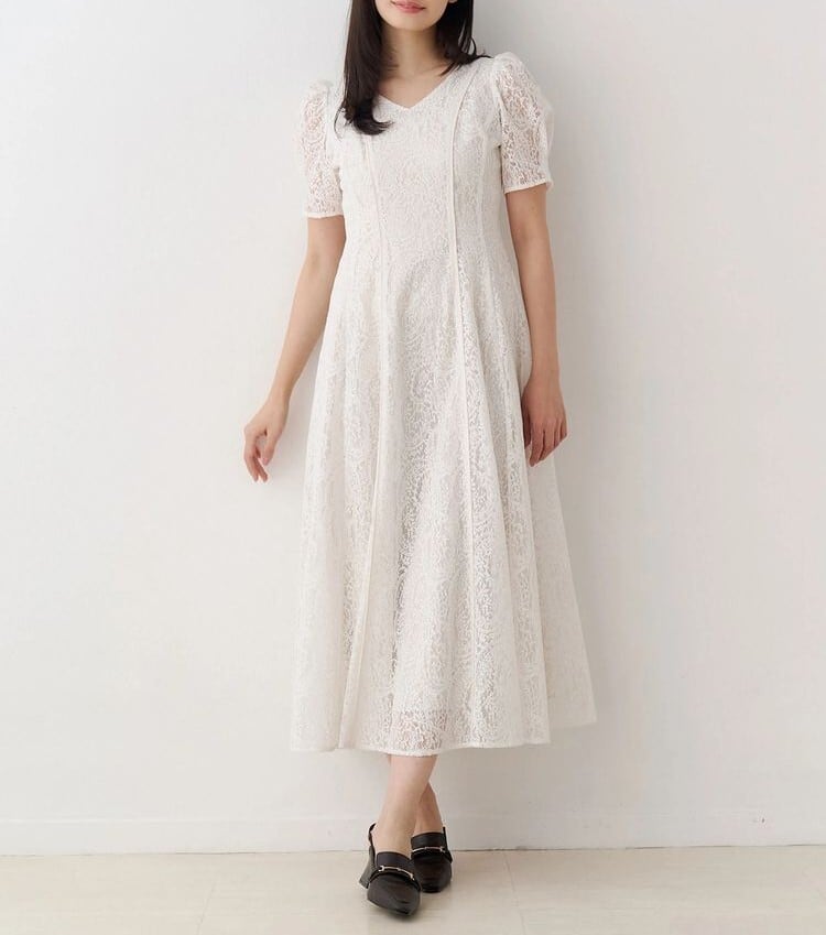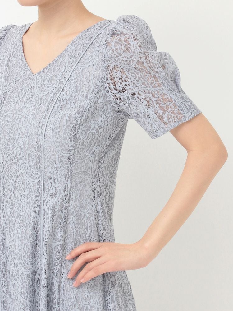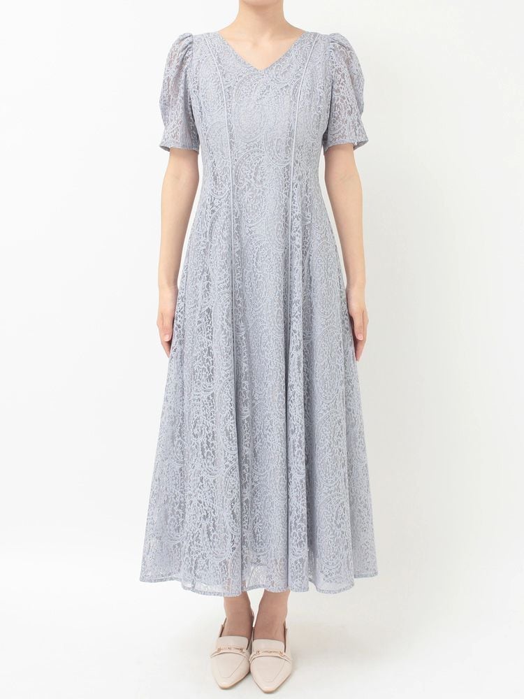 ペイズリーモチーフの繊細なレースが目を惹く、春にぴったりのフィット&フレアワンピース。