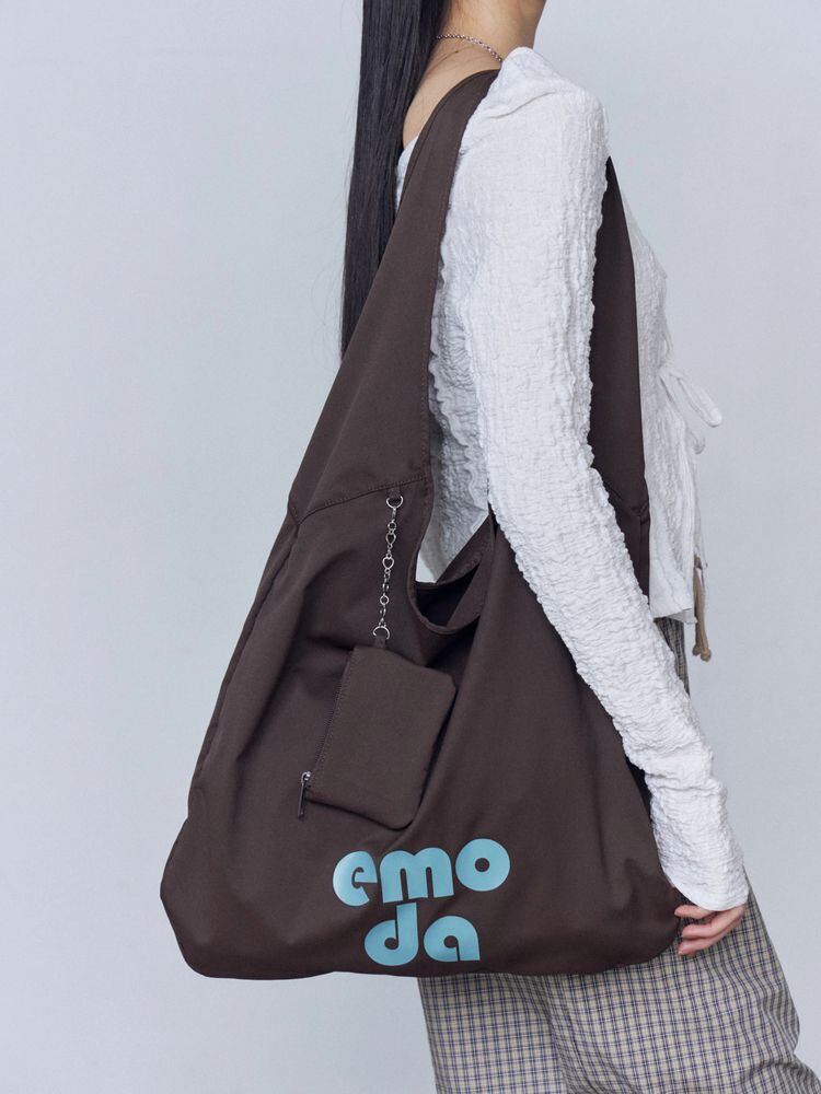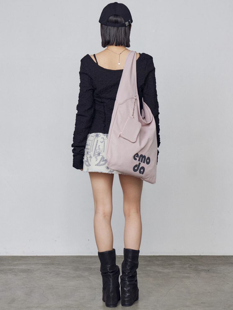 軽やかな素材でデイリー使いしやすく、EMODAのロゴプリントがアクセントになっています。