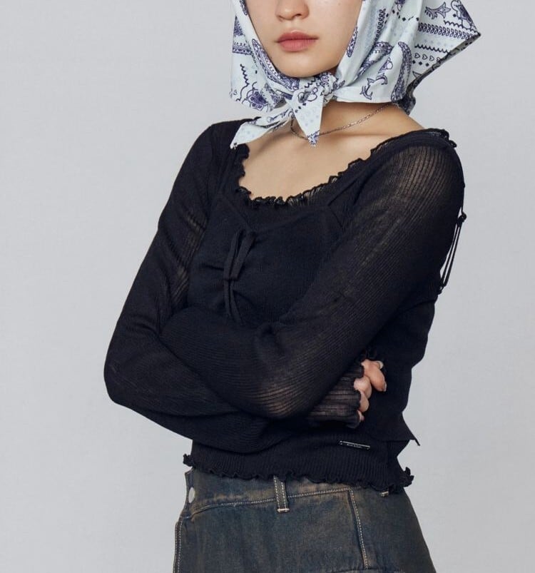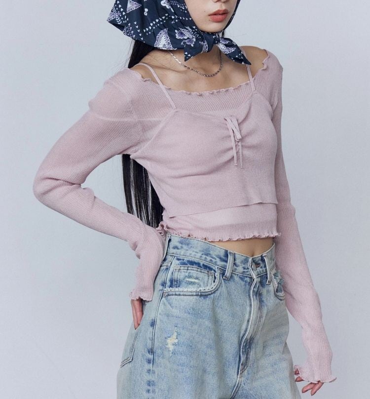 透け感のある糸・編みで作成した2ピースニット