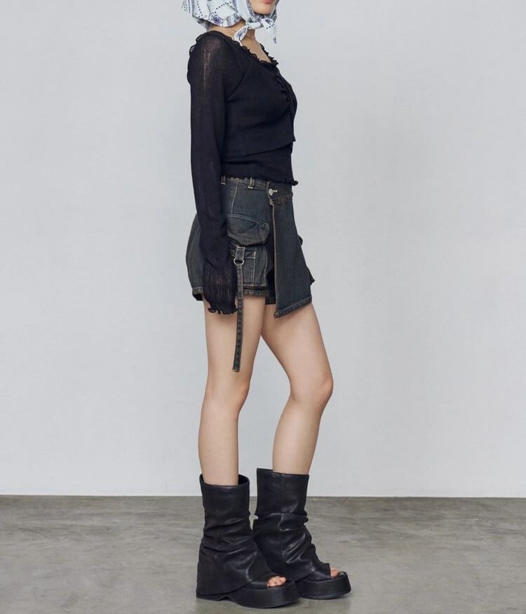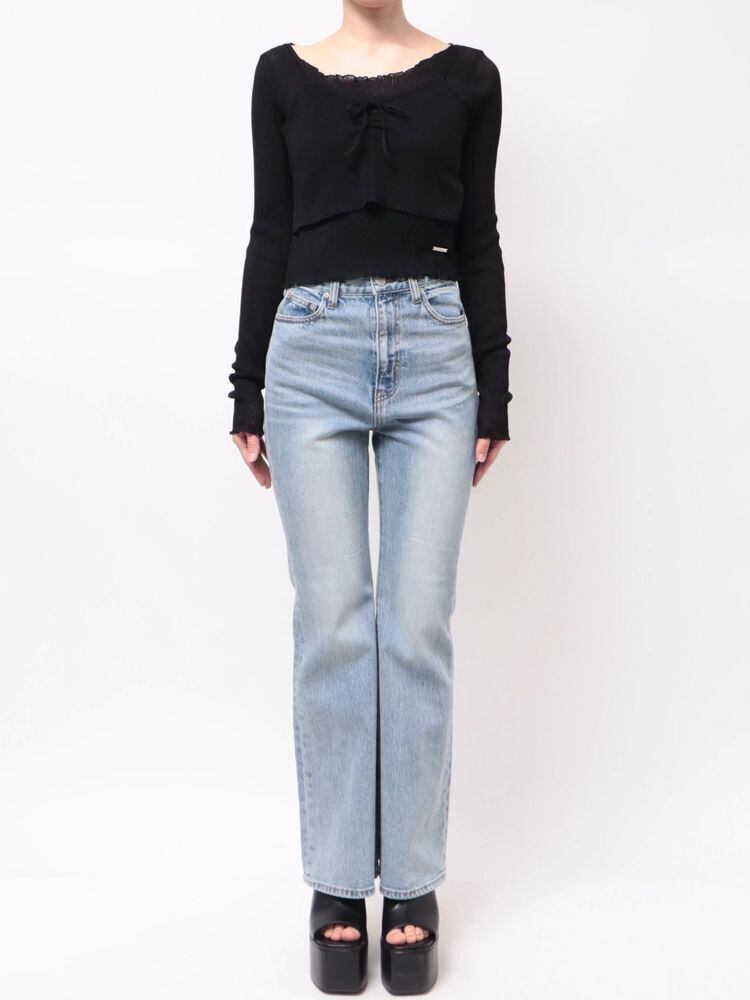 フレアデニムを合わせたクールな着こなしや、