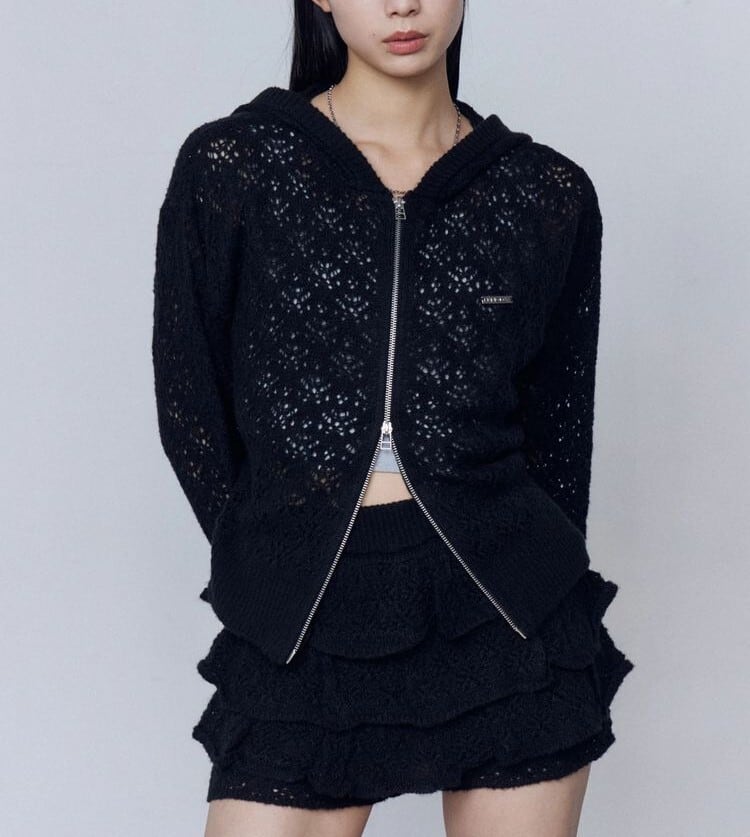 春の軽羽織にぴったりなクロシェ編みのフーディー
