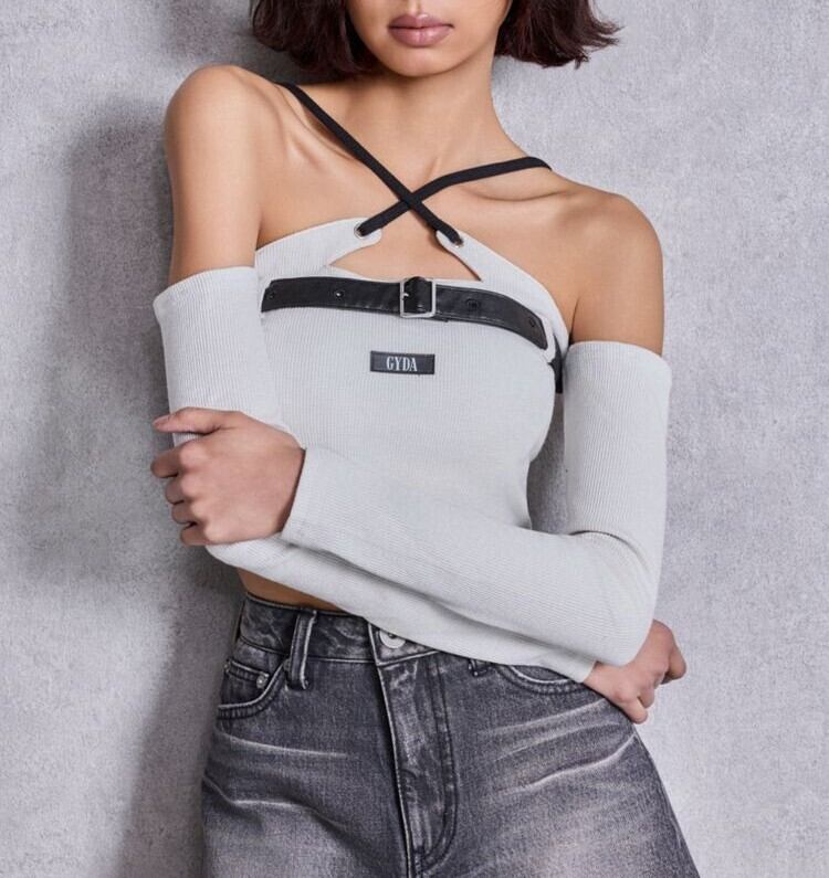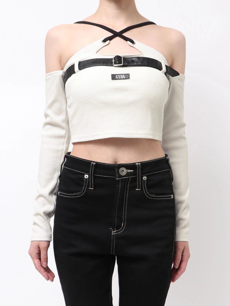 GYDAのレザーパッチでGYDAらしいデザイン要素が詰まったトップス。