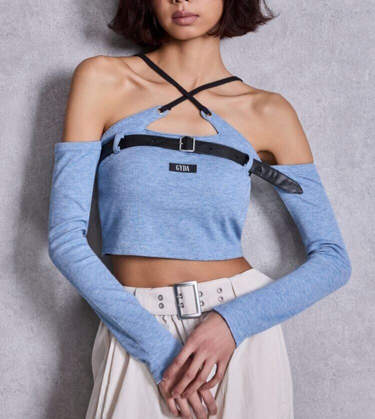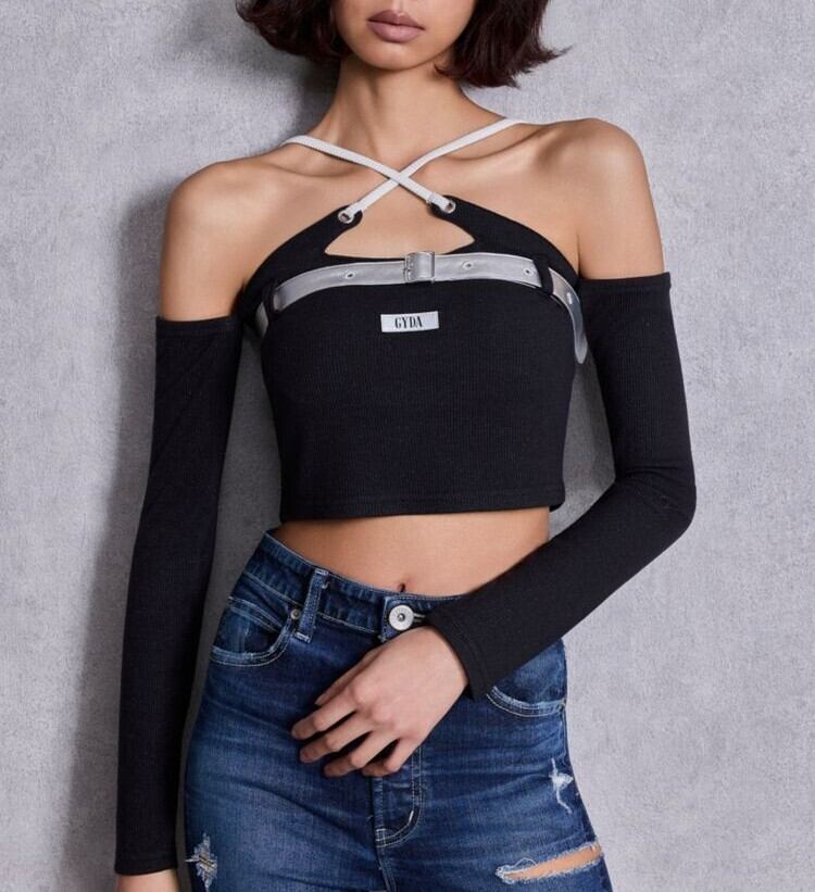 【GYDA】GYDAフロントクロスラメテレコTOPS