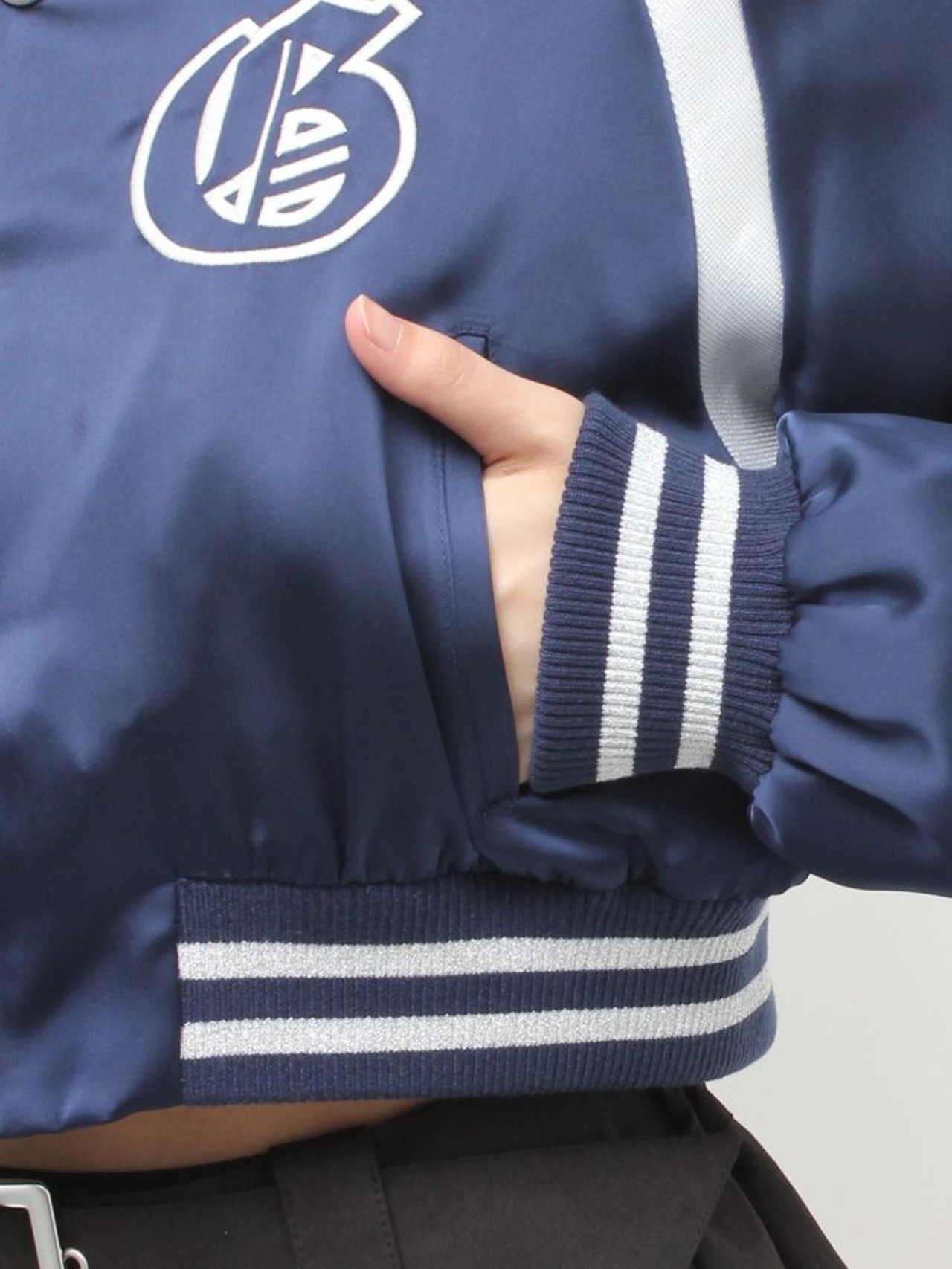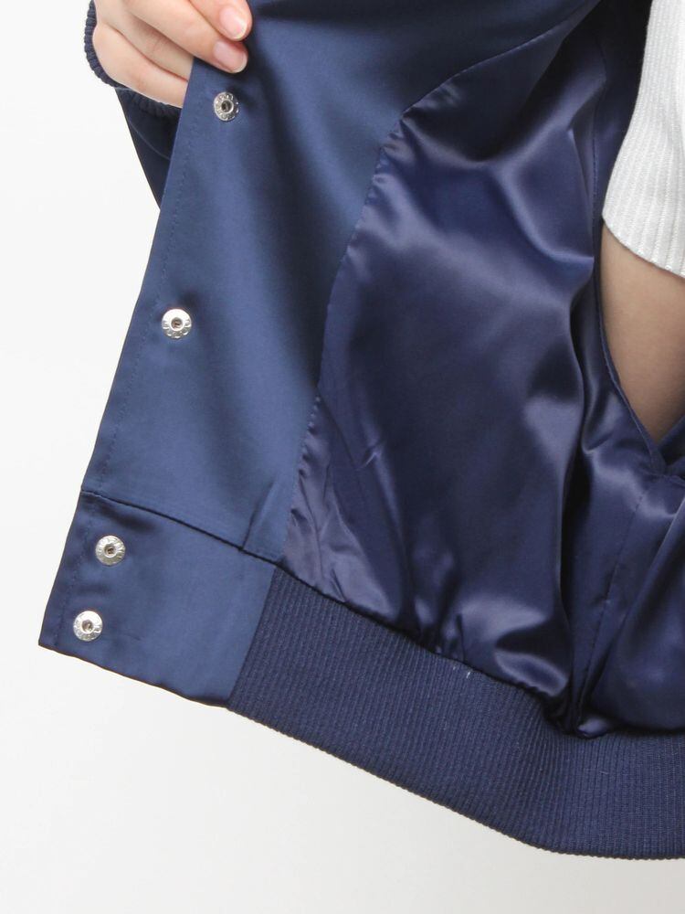 素材:表地:ポリエステル100% 裏地:ポリエステル100% 別布:ポリエステル100% リブ:ポリエステル96% ポリウレタン3% ナイロン1% 刺繍:ポリエステル100%