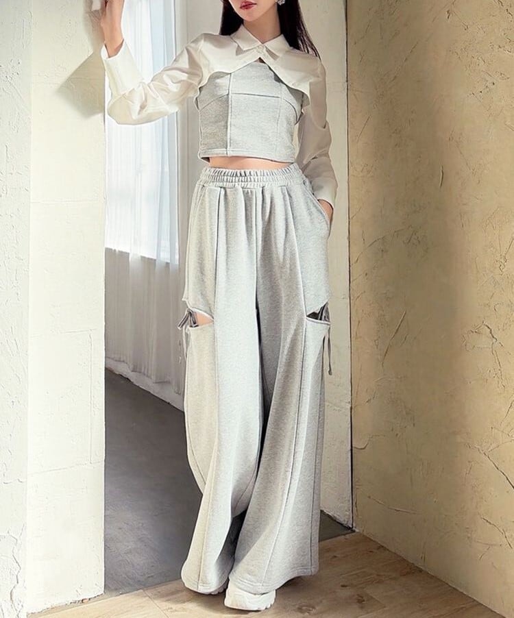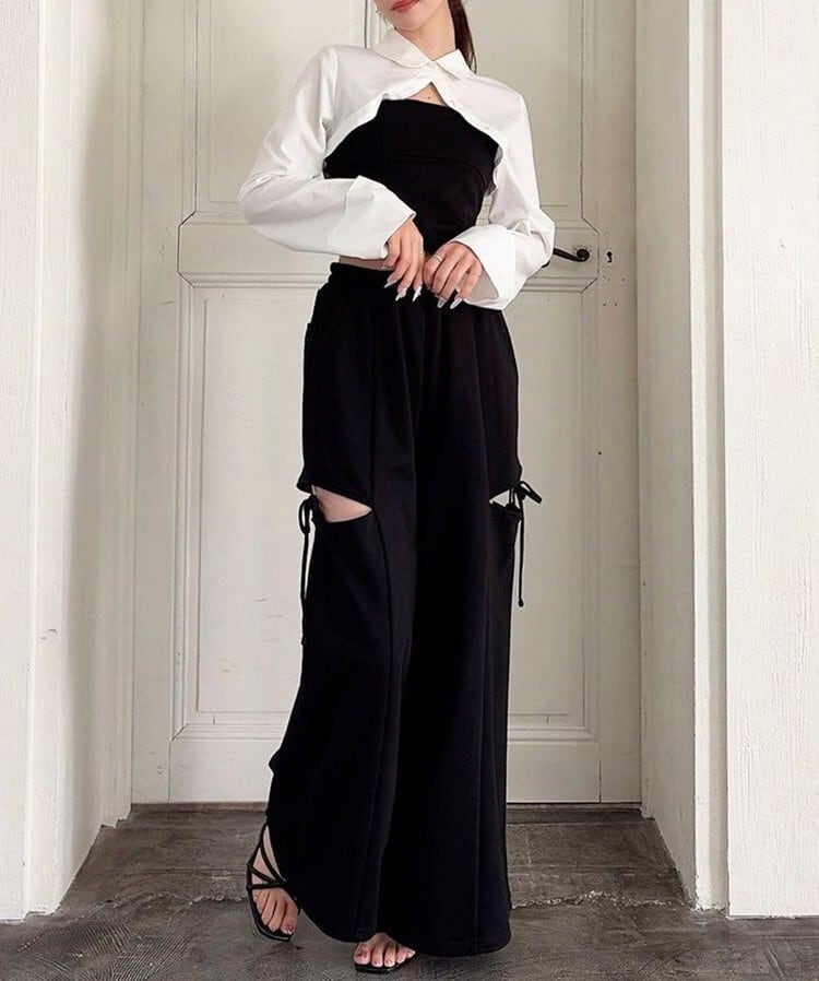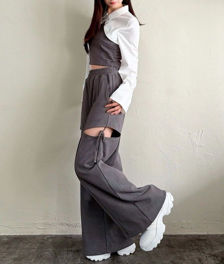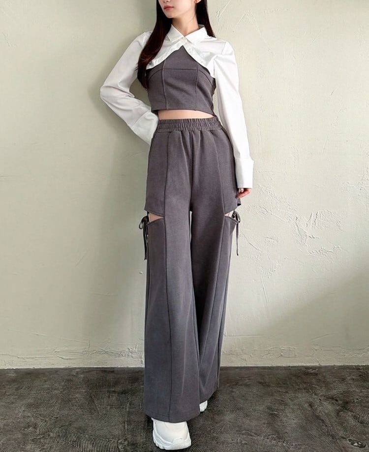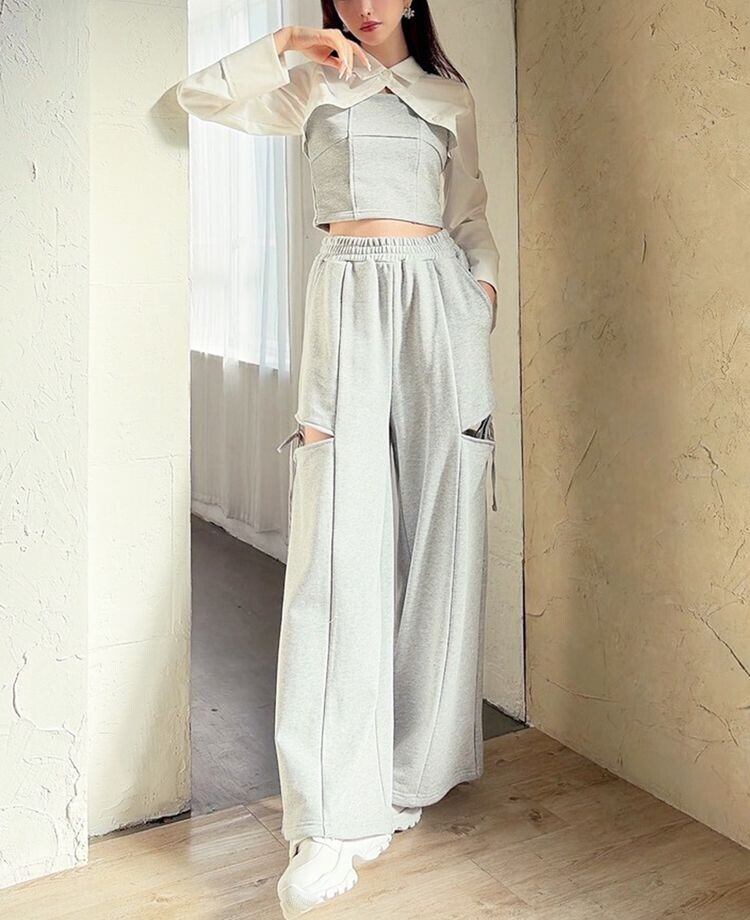 人気のカットアウトの肌見せ+リボンデザインのスウェットパンツ。