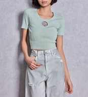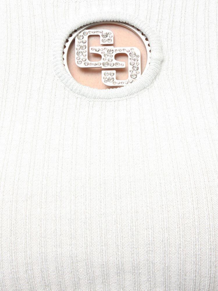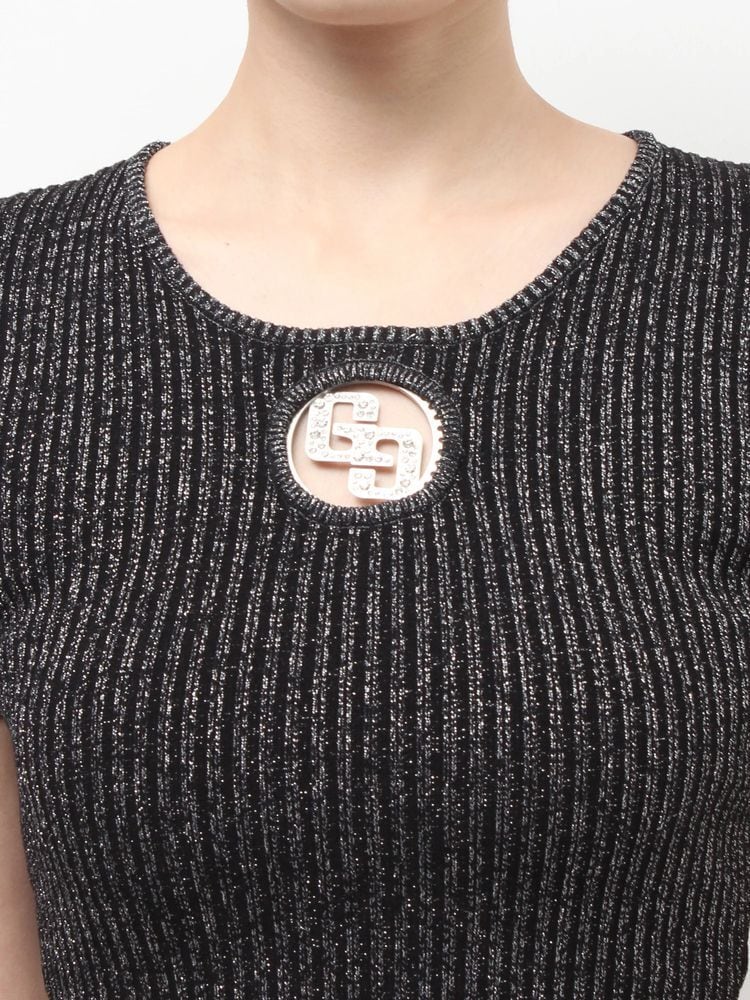 キラキラとしたストーンで埋め尽くされたGGロゴのモールドがポイントのトップス。