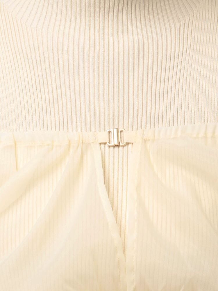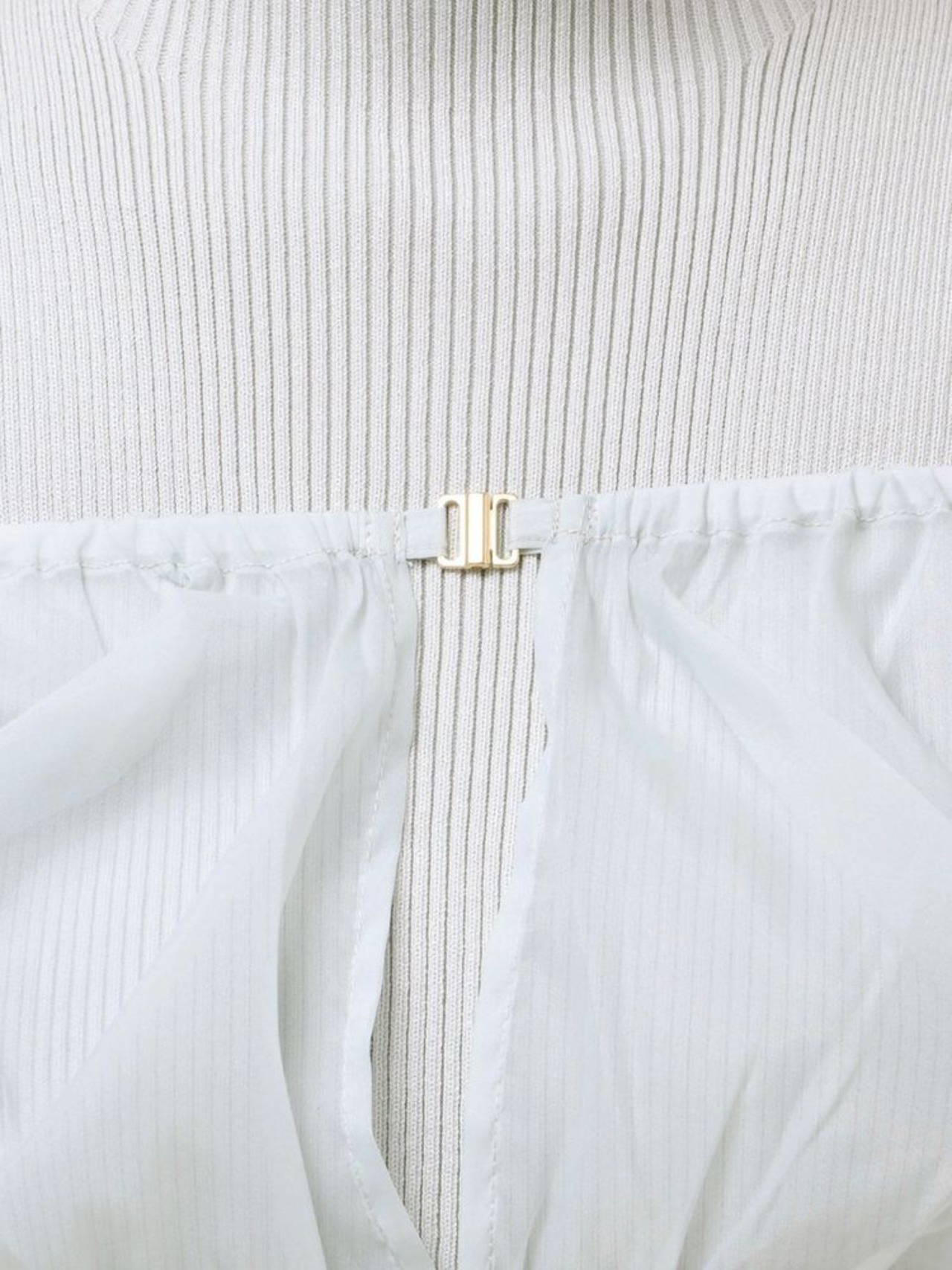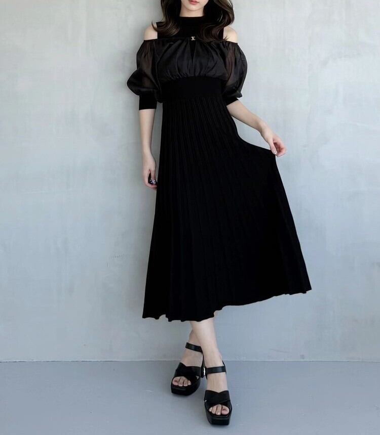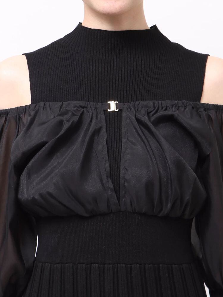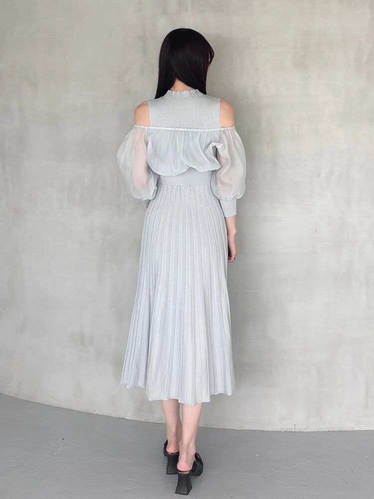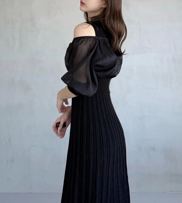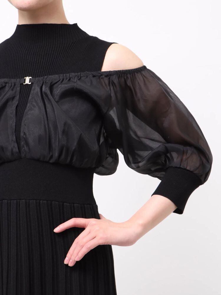 オーガンジー部分はぐるっとゴム仕様になっているため、肩を落としてオープンショルダーとしても着用可能。