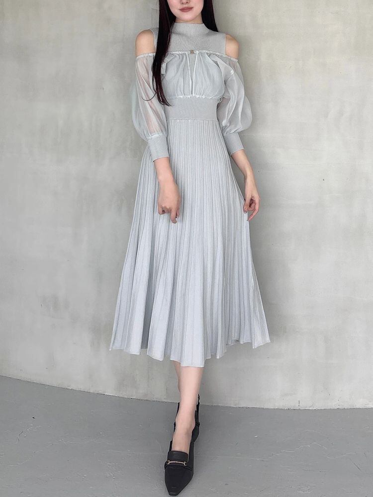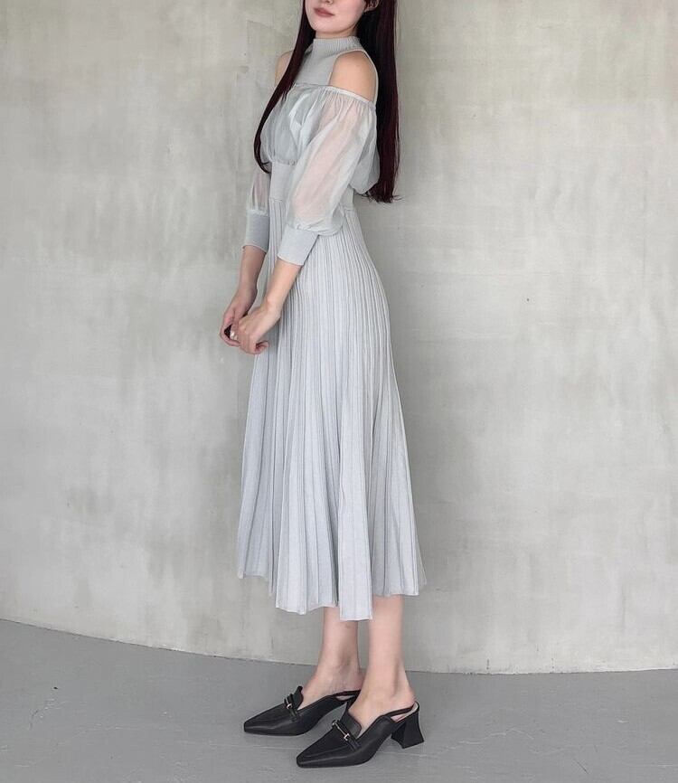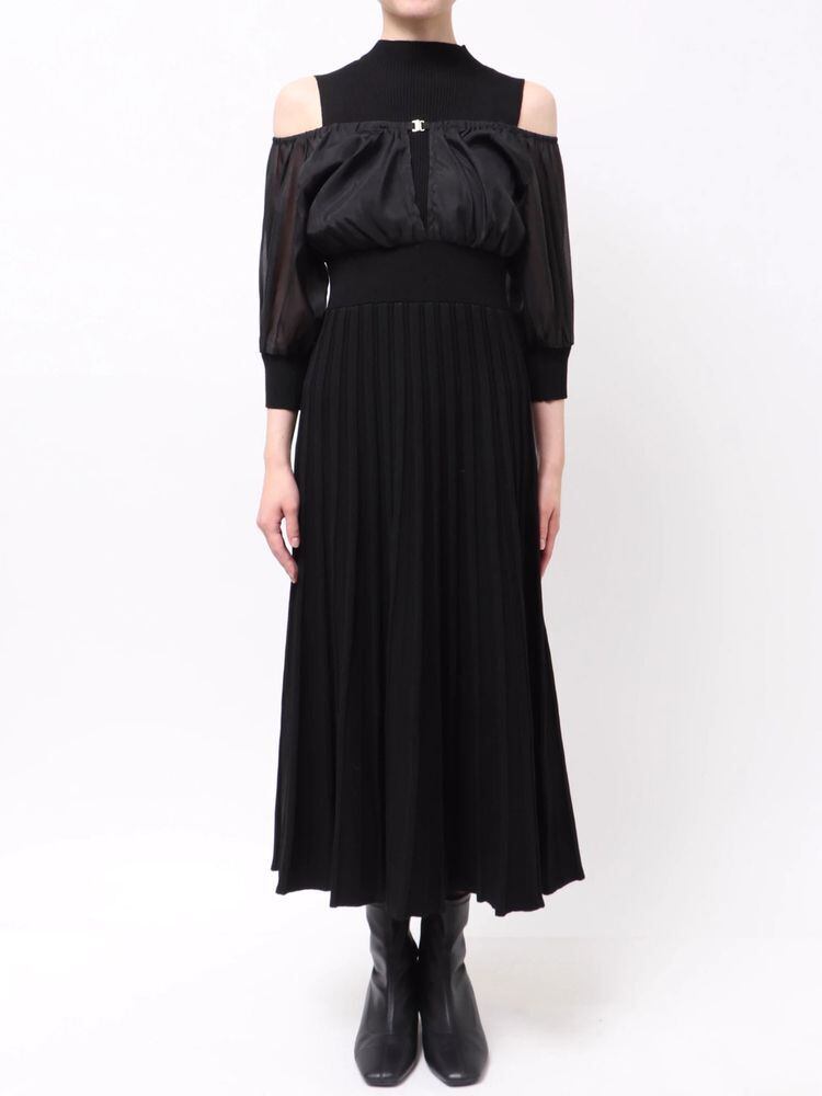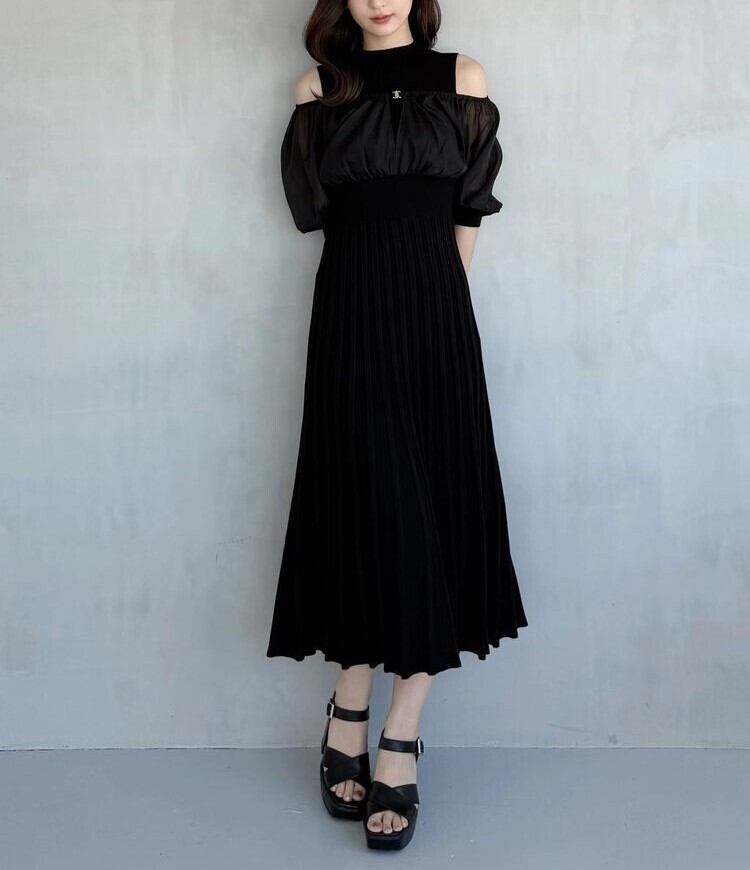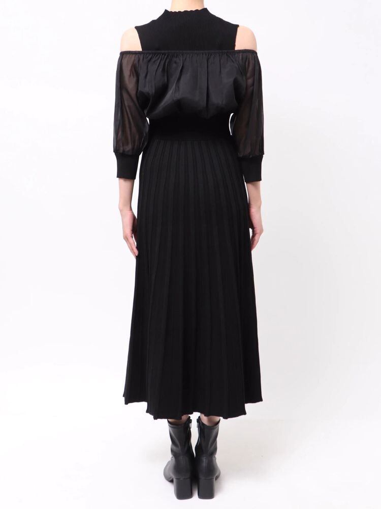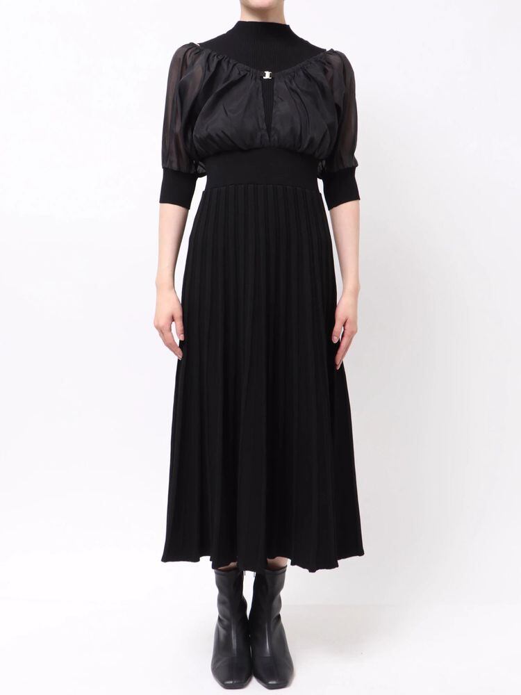 【MERCURYDUO】異素材ドッキングプリーツフレアニットワンピース