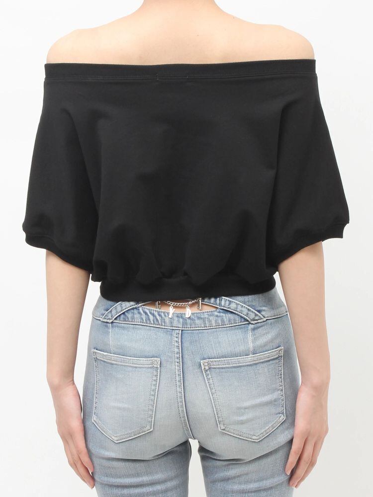 オフショルでもボートネックでも着用できるトップスです。