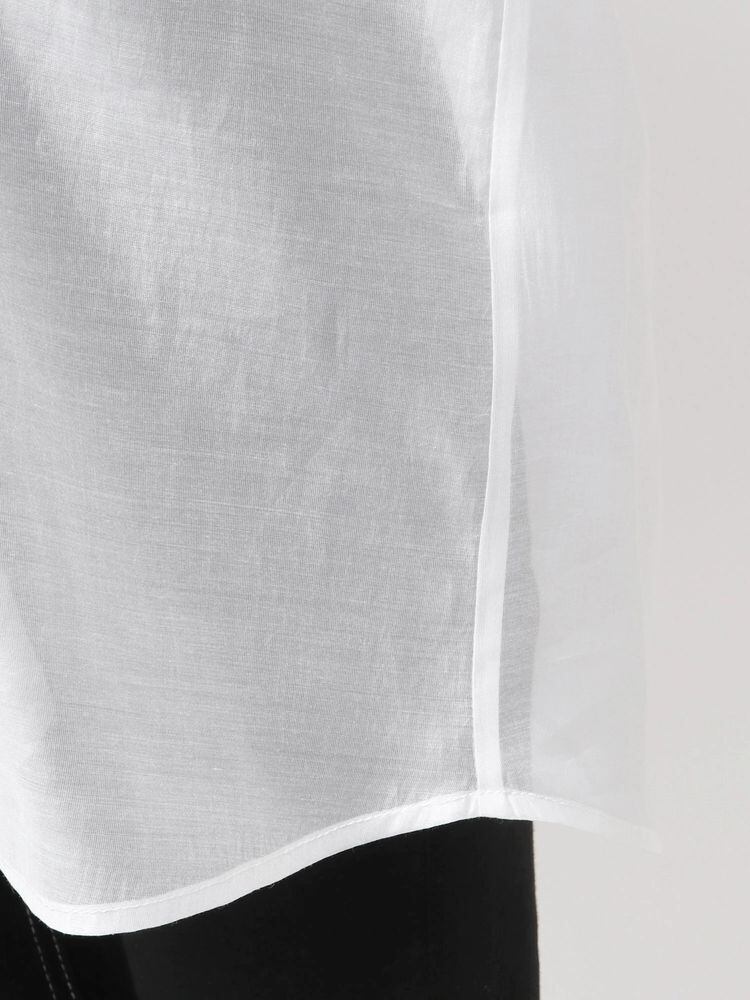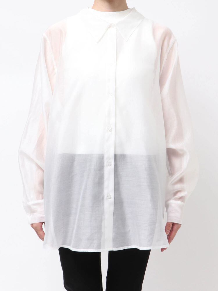 シアーシャツとノースリーブニットトップスのアンサンブルトップスです。