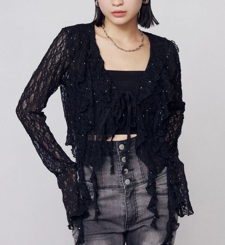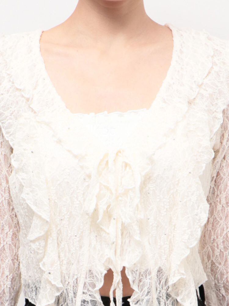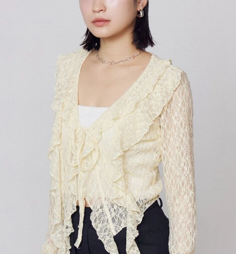トレンドのラッフルフリルディテールが存在感のある長袖トップスです。