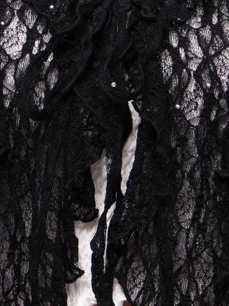レース素材にスタッズを施し、ドット柄のように見える表情が甘さの中にエッジ感をプラスしています。